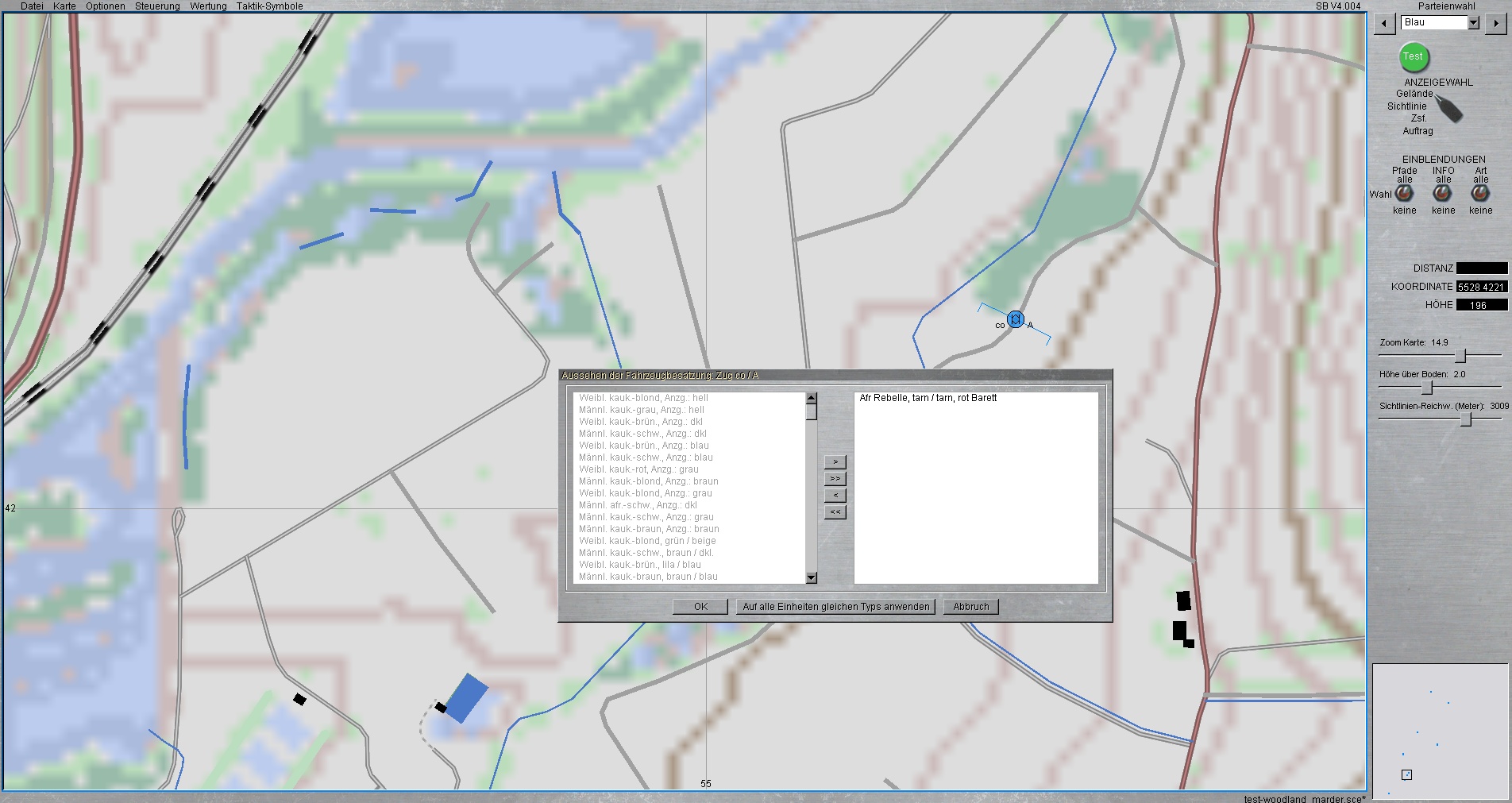 Im Szenario Editor kann das Aussehen der entsprechenden Fahrzeugbesatzung ausgewählt werden. Hier Afr Rebelle, tarn/tarn, rot Barett auswählen - fertig (siehe letzter Screenshot).