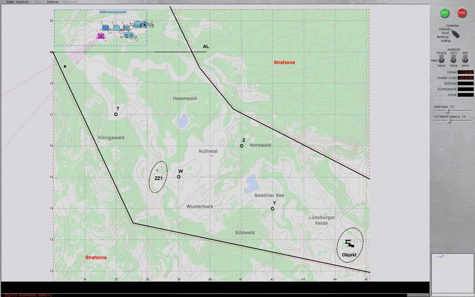 Feindlage: [INDENT]Feind ist mit Spitzen in Stärke eines mechanisierten Regiments auf dem Bereich südöstlich NUTHETAL-WUSTERMARK ausgewichen.