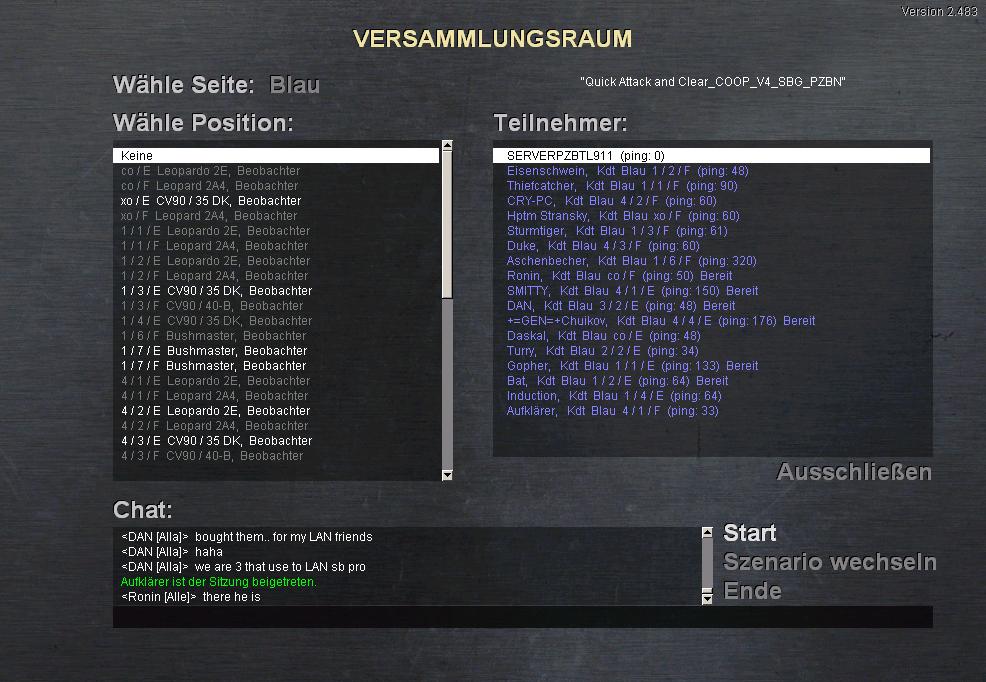 Wir (SB-G) waren ein bißchen aus der Übung was den großen Gefechten anbelangt. Wir haben noch viel zu lernen und zu üben, aber nachste mal wid es besser klappen ;)