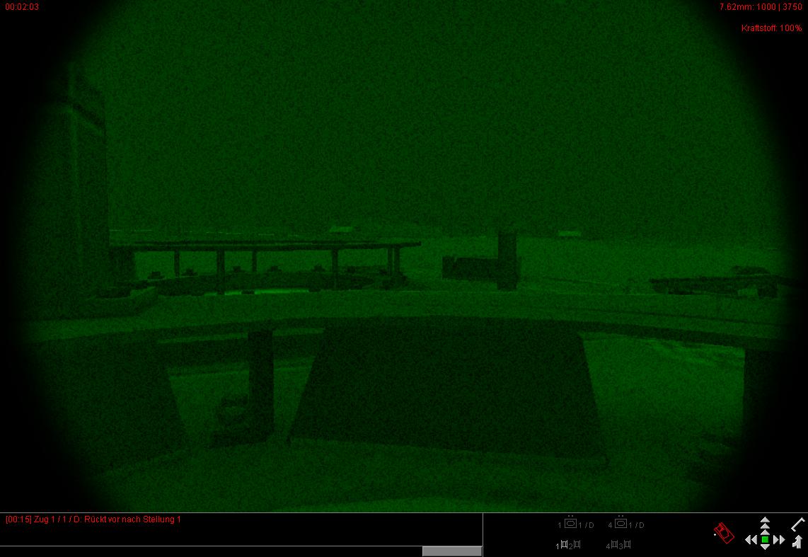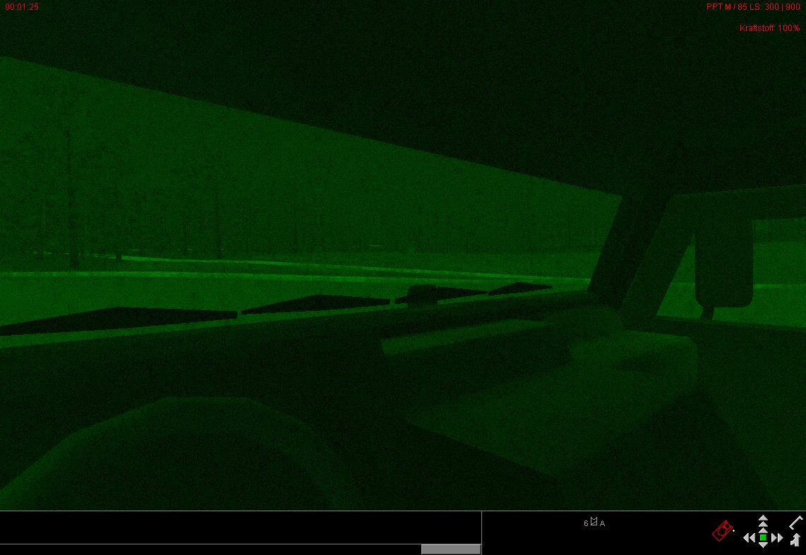 Das BIV funktioniert bei allen Fahrzeugen (wenn in Optionen angeklickt) beim Fahrer. Besonders zu verwenden und funktional ist dies bei meinem ZugSce Nachtkampf, da hier in der Aussenansicht fast nichts zu erkennen ist. Wenn man jetzt allerdings auch mal als Fahrer aktiv wird kann man mit dem BIV sehr viel erkennen. Hier mal Bilders:
