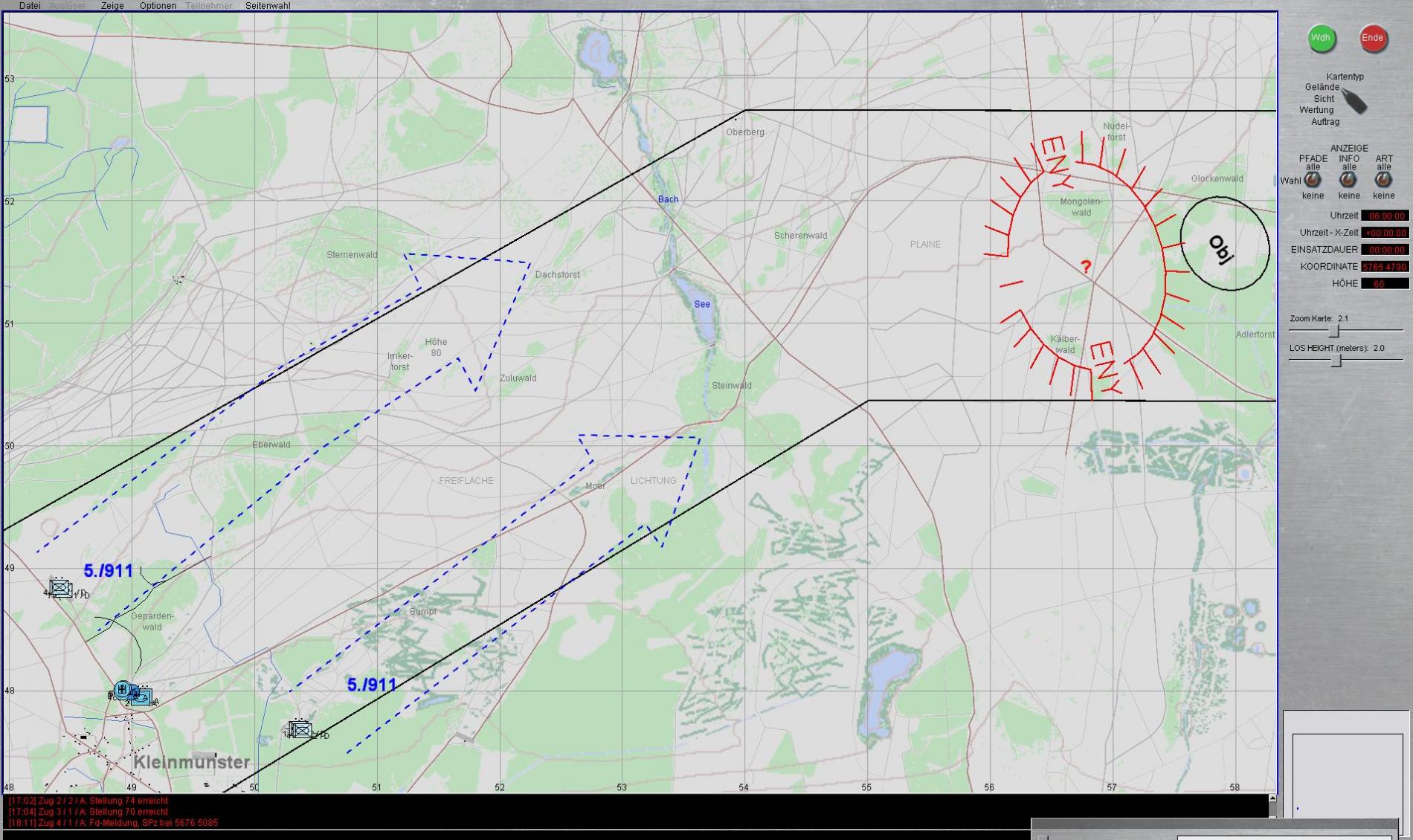 Eigene:[INDENT]2./911 hat NO von KLEINMUNSTER Stellung bezogen und bereitet sich auf einen Angriff in Richtung Adlerwald vor.