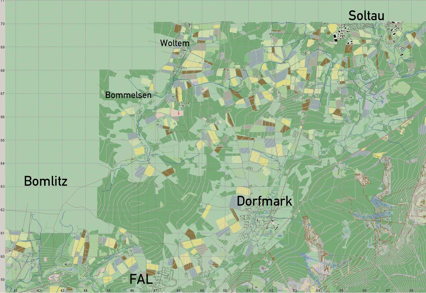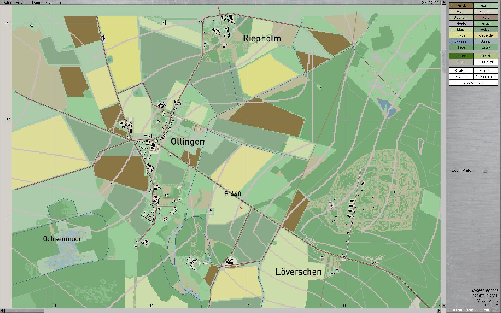 Ich nutze PC-MAP. Habe die Karte auch in einigen Bereichen bzgl. Bebauung/Bepflanzung aktualisiert. Die TrÜbPl-technischen Bebauungen sind m.E. nicht so wichtig, da sie Veränderungen unterliegen und es zumal eine eigene hgt-Karte für den Platz gibt. Mir kommt es mit Schwerpunkt auf die Umgebung des Platzes an, da es sich hier um ein insgesamt flaches, stark von kleineren bis mittleren Ortschaften/Städten sowie großen Waldstücken durchsetztes Gelände handelt, das zudem Flüsse und Sumpf-/Moorbereiche aufweist. Etliche meiner Szenarien bauen auf dieser Karte auf.