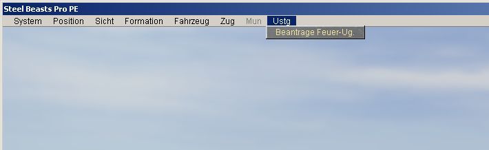 Bei der Anforderung über ein Gefechtsfahrzeug wird dazu oben links in der Menüleiste das Feld "Ustg" ausgewählt. Es öffnet sich ein Kontextmenü. Hier müssen neben den Koordinaten verschiedene andere Parameter eingeben werden.