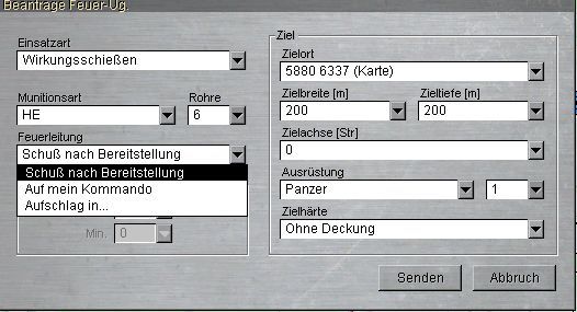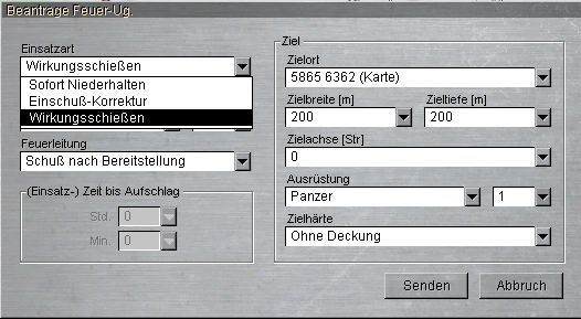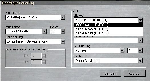 Auf mein Kommando: es wird ein Feld in die Karte eingetragen. Das Feuer erfolgt dann über das Menü zum Wiederholen und Koordinieren von Feueraufträgen.