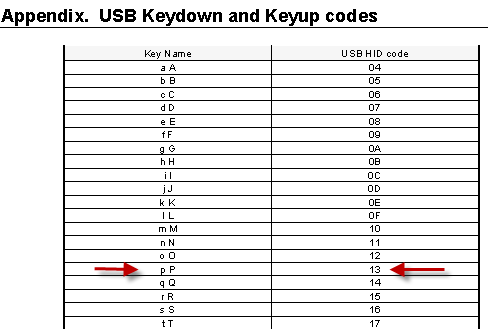 in obiger Zeile habe ich der Vorhaltefunktion (Taste P = Code USB[0x3F]) den Namen p_Lead_Target zugewiesen. Den Tastaturcode in den eckigen Klammern entnehme ich aus folgender Tabelle von Thrustmaster.