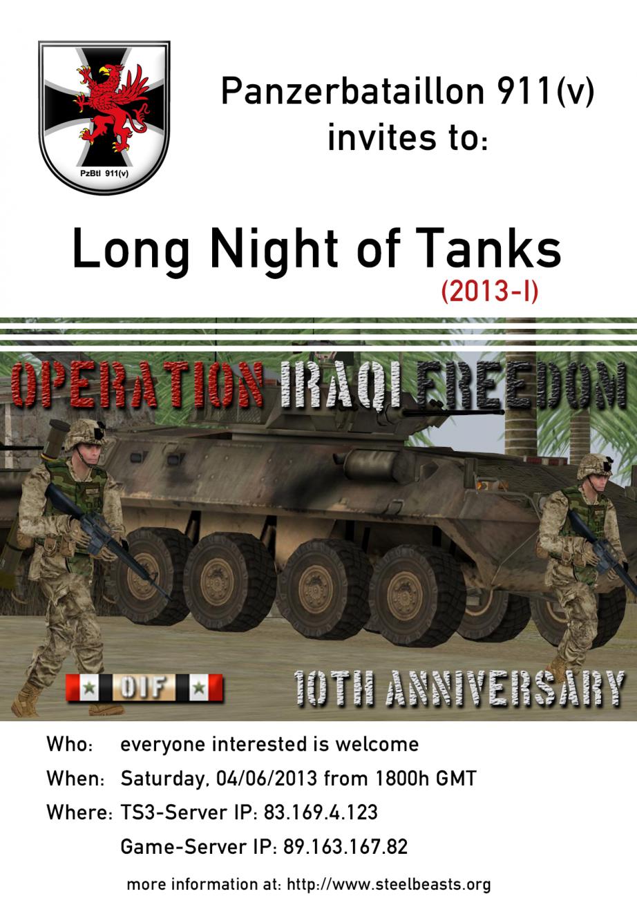 After the last successful "Long Night of Tanks LNoT" in October 2012, we have to state: