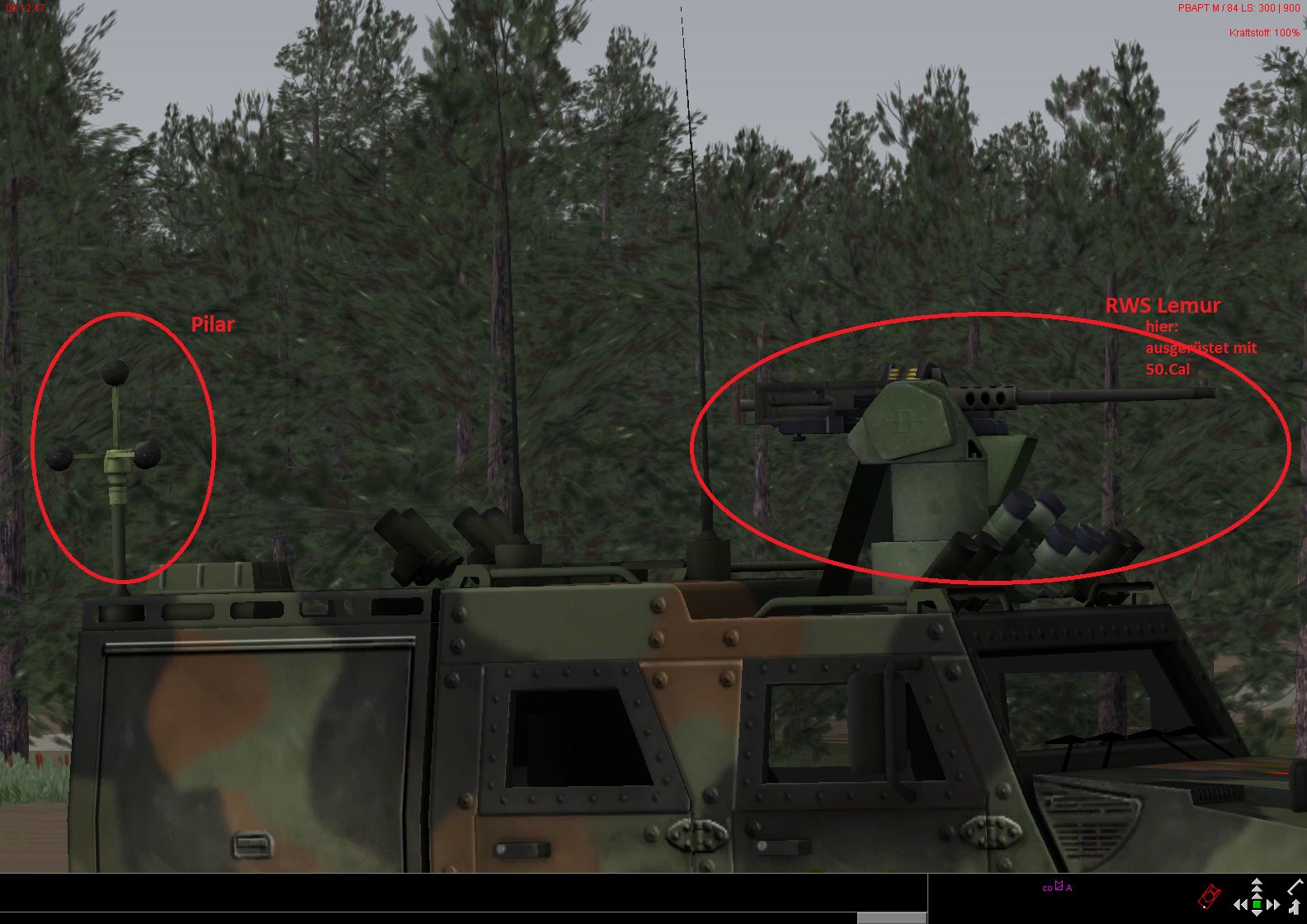 Sie ist entweder mit dem .50CAL oder einer 40mm Granat Maschinen Waffe ausgerüstet. Das Waffensystem kann mit der Pilar Mikrofon-Aufstellung ergänzt werden. Dies ist ein Schußortungssystem und mit der Feuerkontrollanlage direkt verbunden. Dadurch werden wichtige Sekunden bei der Aufklärung und Bekämpfung des Ziels gespart (asymetrischer Krieg).