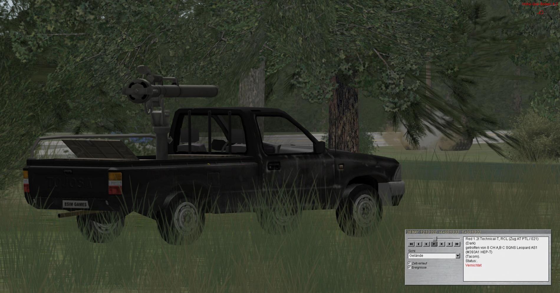 No sooner than the Combat team drove into their assigned areas the enemy showed among fleeing civilians from the war. At first there was panic over the air, however the CO found the information he needed and issues quick orders to reposition his Leopards on south eastern side of the AO. Meanwhile on the northern side a lone vehicle attempted to run the battle position, almost catching the fire team of Leopards off guard. The fire team commander Tango 11 not knowing of the kill from his wingman 11B, moves to search, for what he though was a hole in his battle position, which the enemy had gone through. The fog of war had set upon the area. Another high speed run at Tango 12B had the same result, the Canadians being confident after winning CAT in the previous years.