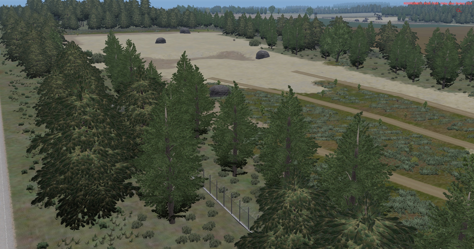 Nach zig Monaten mal wieder ein kleines bisschen angefangen zu gärtnern. Straßenkurven nachträglich noch runder gemacht, Die Panzerringstraße an Munster-Nord durch Betonstraßen ausgewechselt, die paar Kiesgruben jetzt mit mehr Tiefen und diesmal mit Stahldrahtzäunen. In BROCKHÖFE auch mal ein bisschen weitergebaut und im Norden bei EHLBECK auch weitergebaut und Windräder auf Sockel gesetzt.