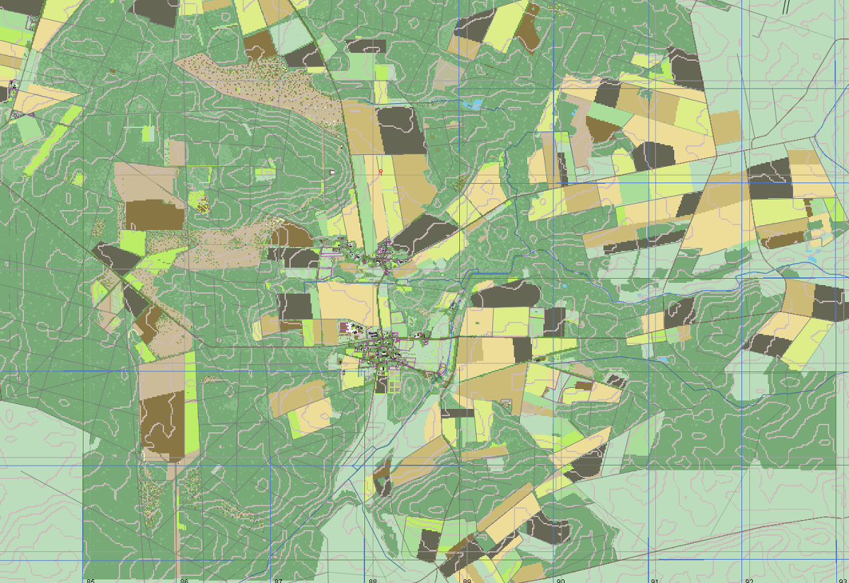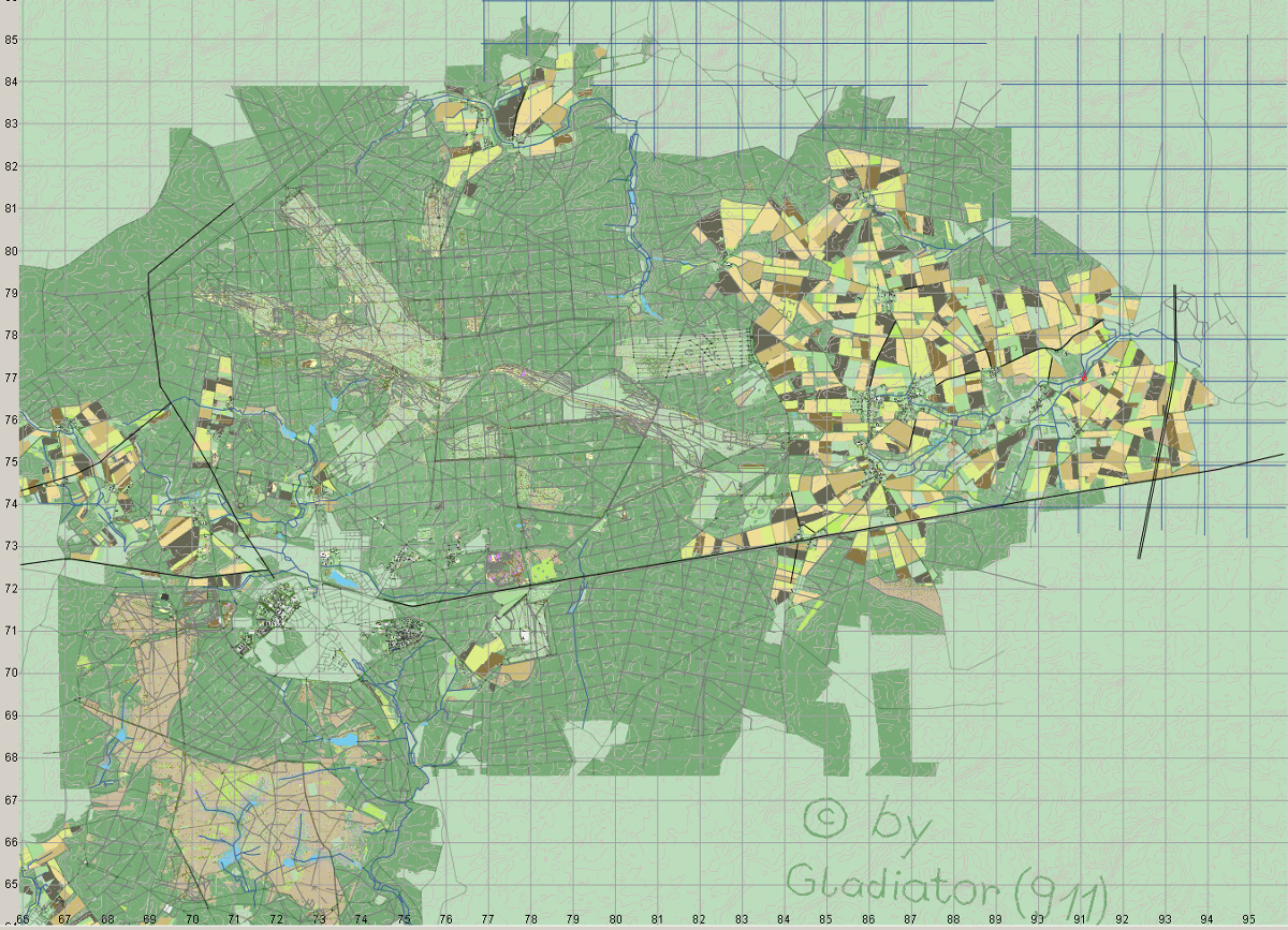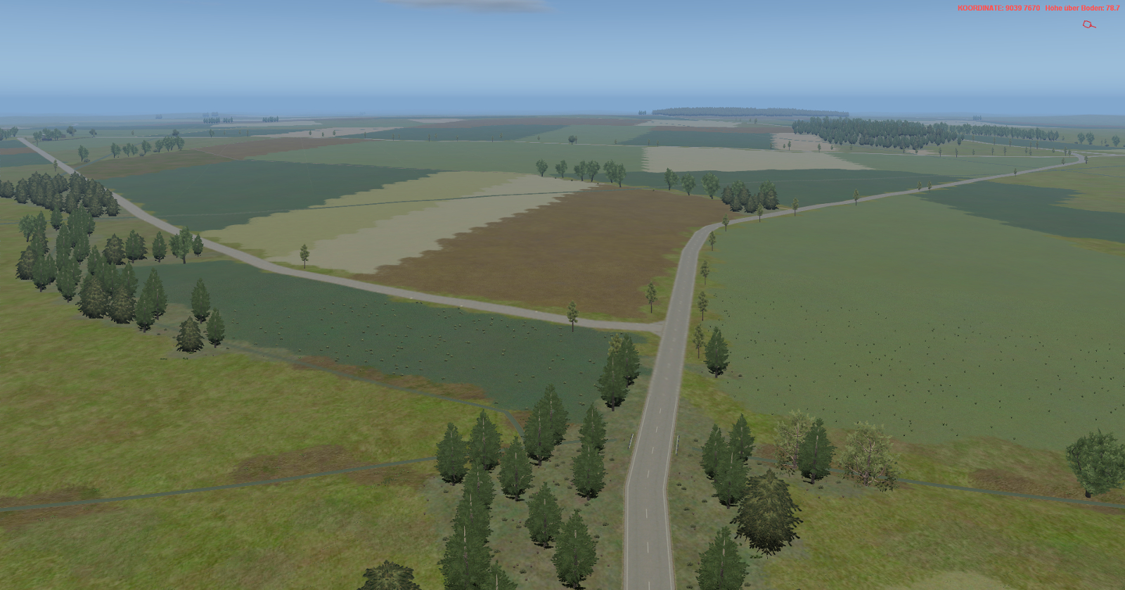 Was man so alles an einem freien Tag in 3 Stunden schafft... Straßen und Feldwege verlegt, dann die kleineren Wälder und dann die Felder angelegt.