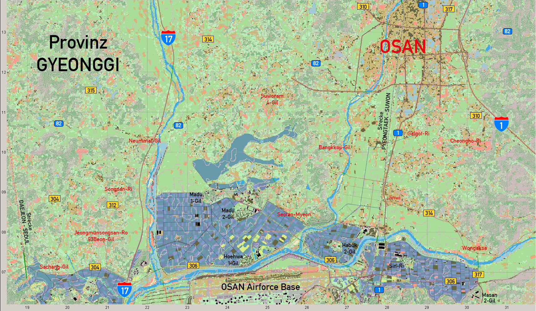 Mit drauf sind auch das Suwon Airfield sowie die Osan AFB.