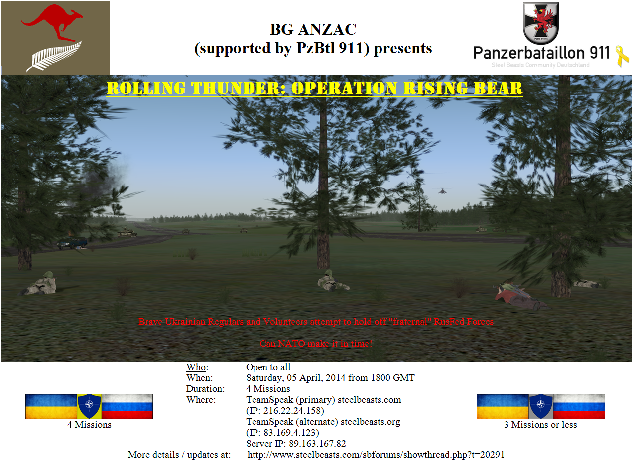 Ihr könnt schon mal die Scenarios für Samstag runterladen.