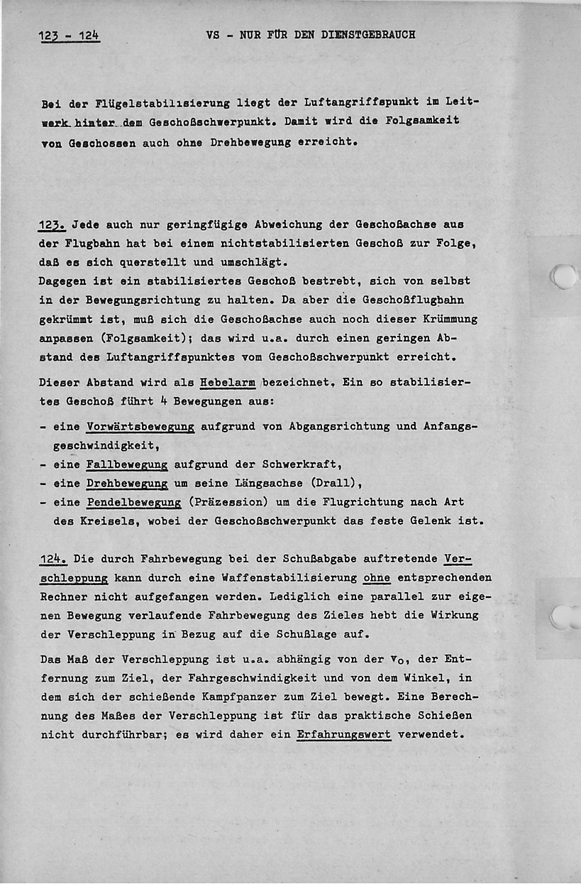 Der Haltepunkt bei Kampfpanzern ohne Feuerleitrechner, ist also so zu verlegen, dass die Verschleppung ausgeglichen wird.