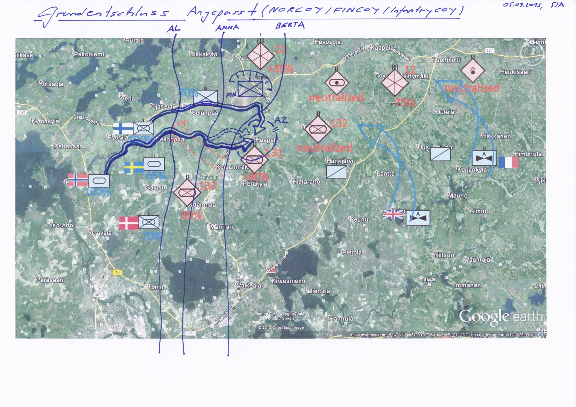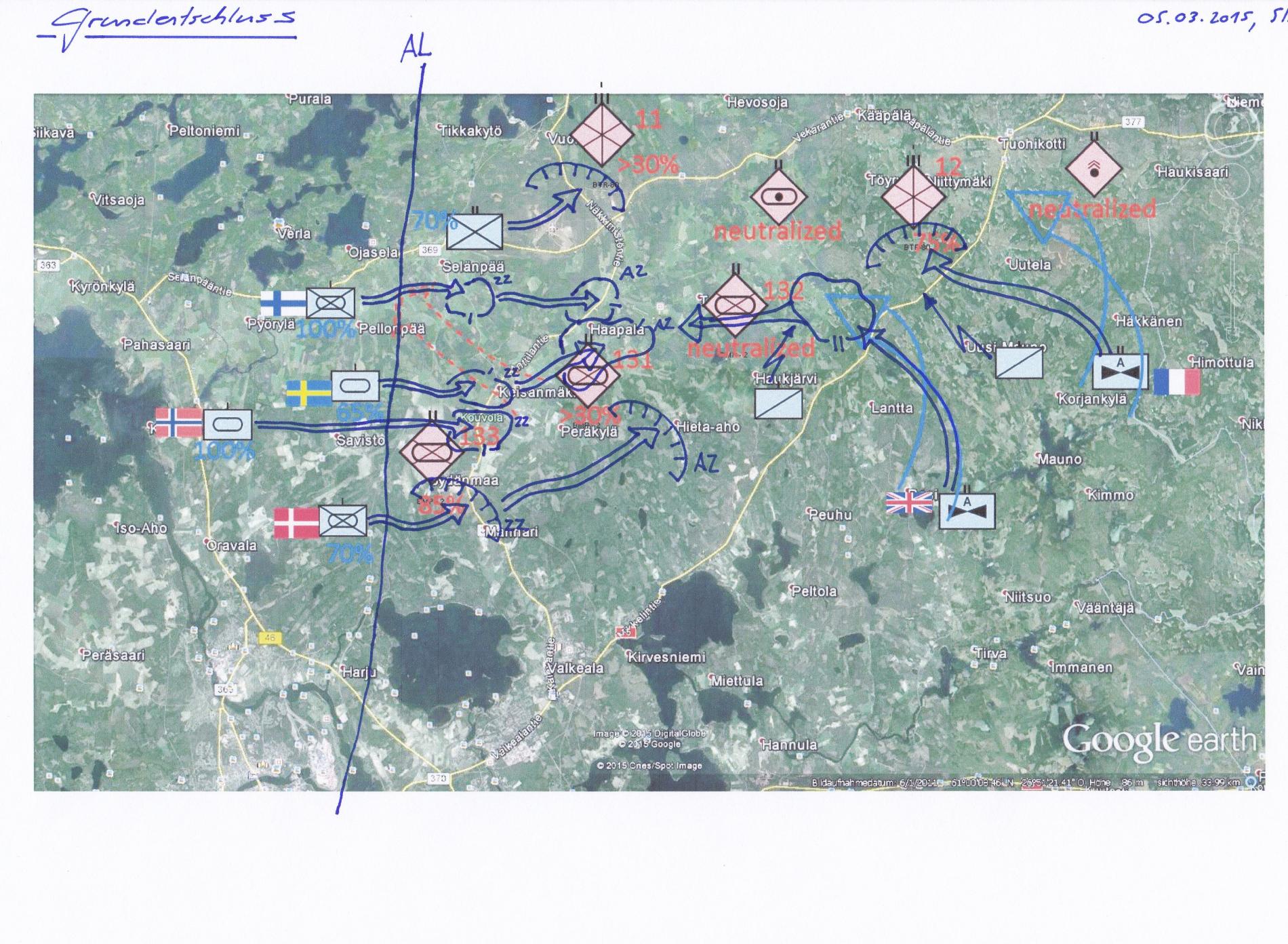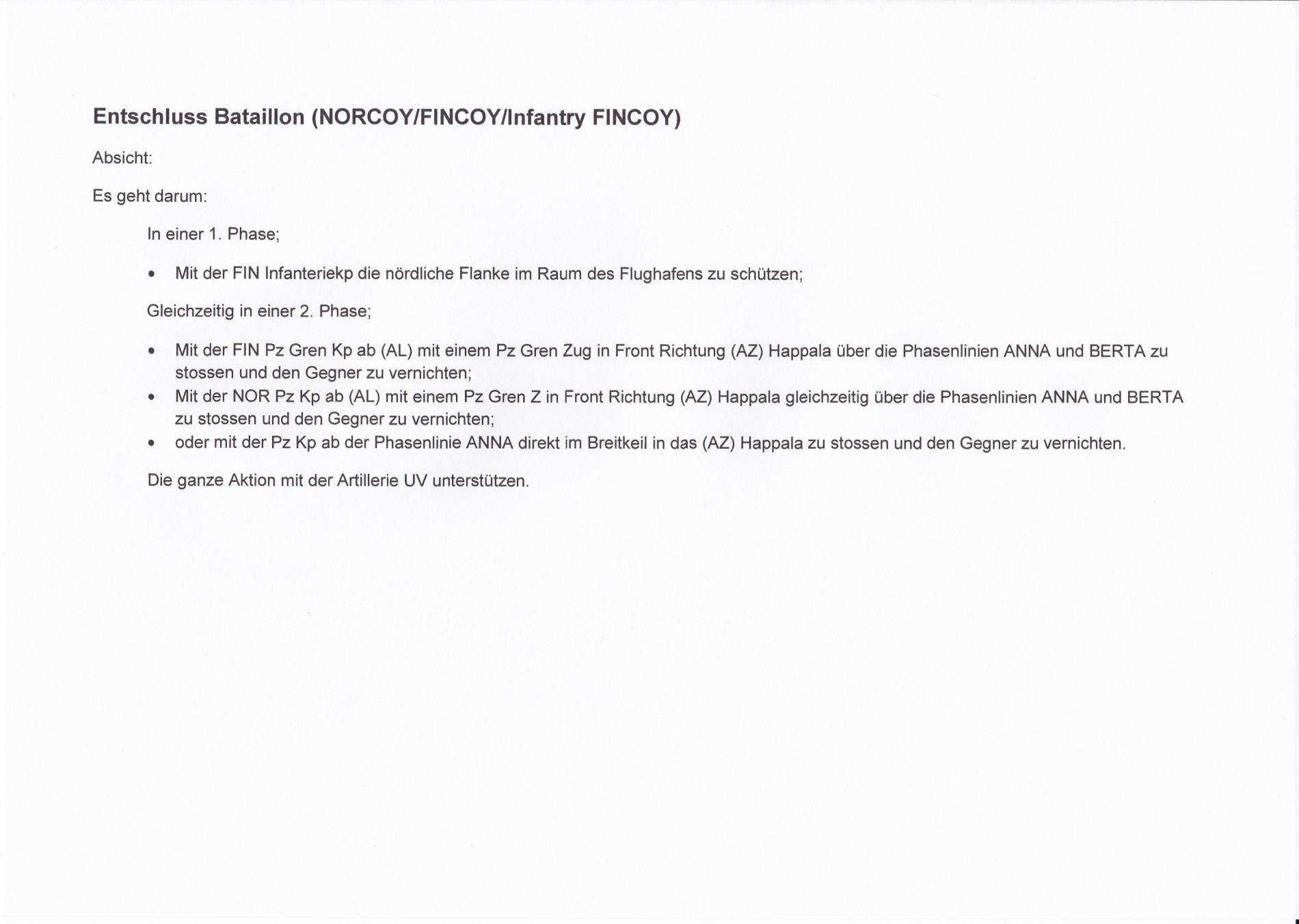 FINBAT konnte Einbruch an Strasse gegen 0200Z in zusammenwirken mit Art. Abbrigeln, Durchgebrochene Fd Kräfte (Kp(-), mit KPz unterstützung) vermutlich im Raum südlich SELÄNPÄÄ
