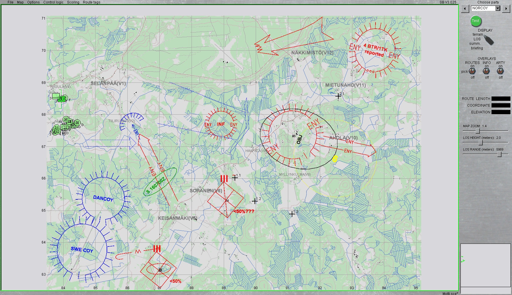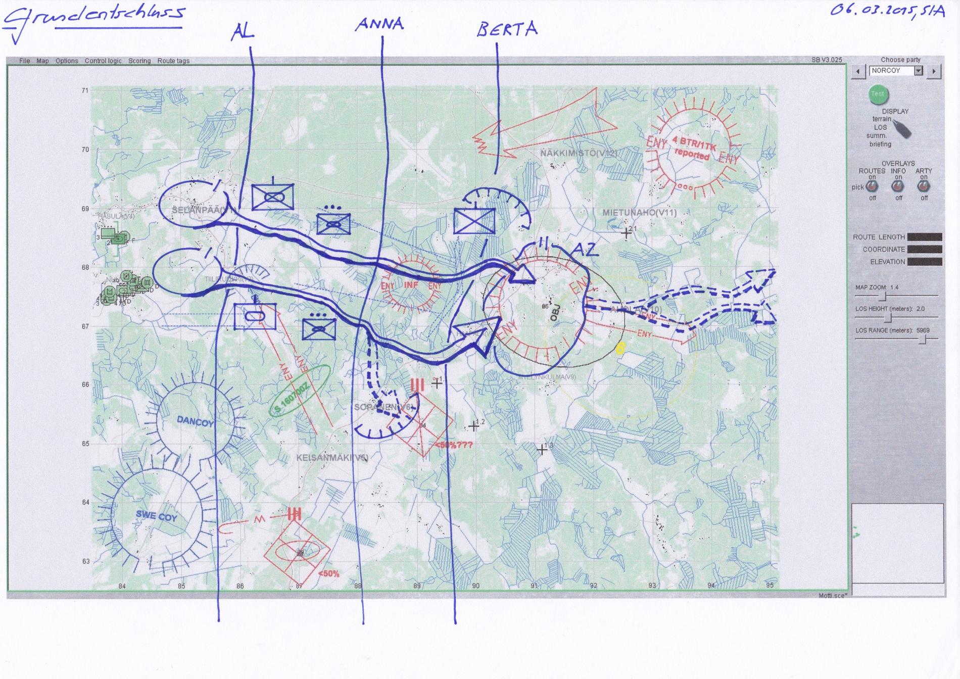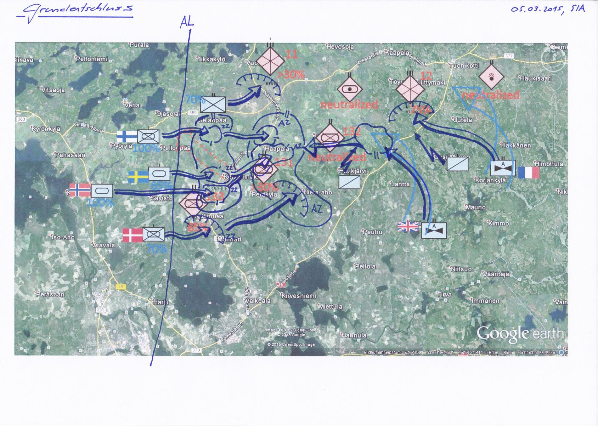 FINBAT konnte Einbruch an Strasse gegen 0200Z in zusammenwirken mit Art. Abbrigeln, Durchgebrochene Fd Kräfte (Kp(-), mit KPz unterstützung) vermutlich im Raum südlich SELÄNPÄÄ