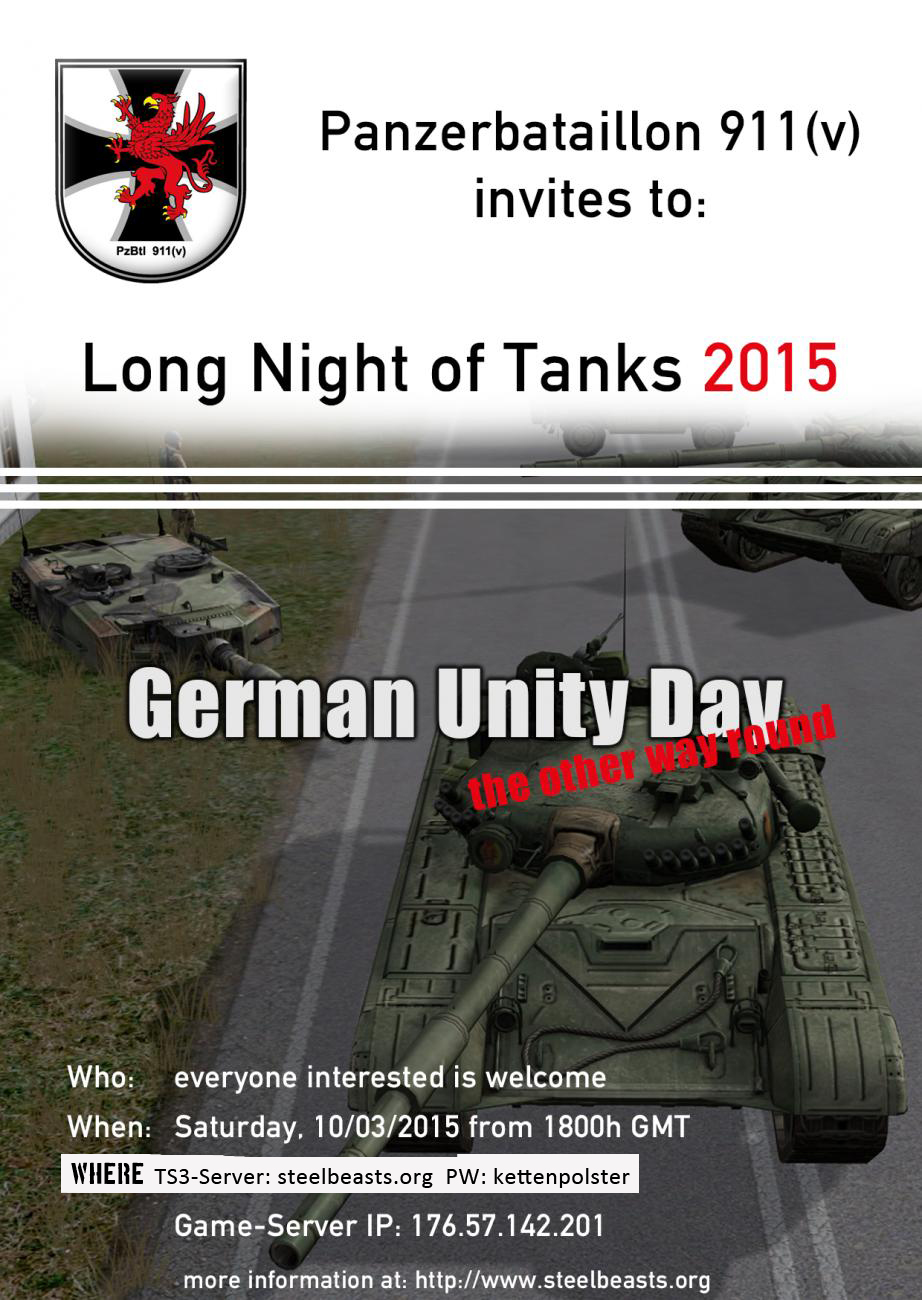 German online community “Panzerbataillon 911(v)” invites everyone interested to join the legendary battle of combined arms on Saturday, 3rd of October 2015 starting at 1800h UTC.