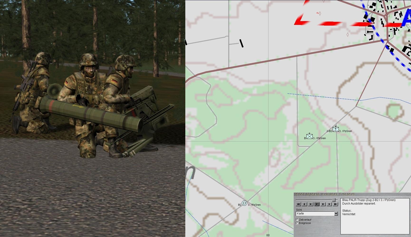 Im FKpf mit diesen FdPz wird der PALR-Trp vernichtet. Und jetzt kommt der SanTrp von B2 ins Spiel: "Durch Eingreifen des Ausbilders wird der Trp reanimiert: ein Wunder!"