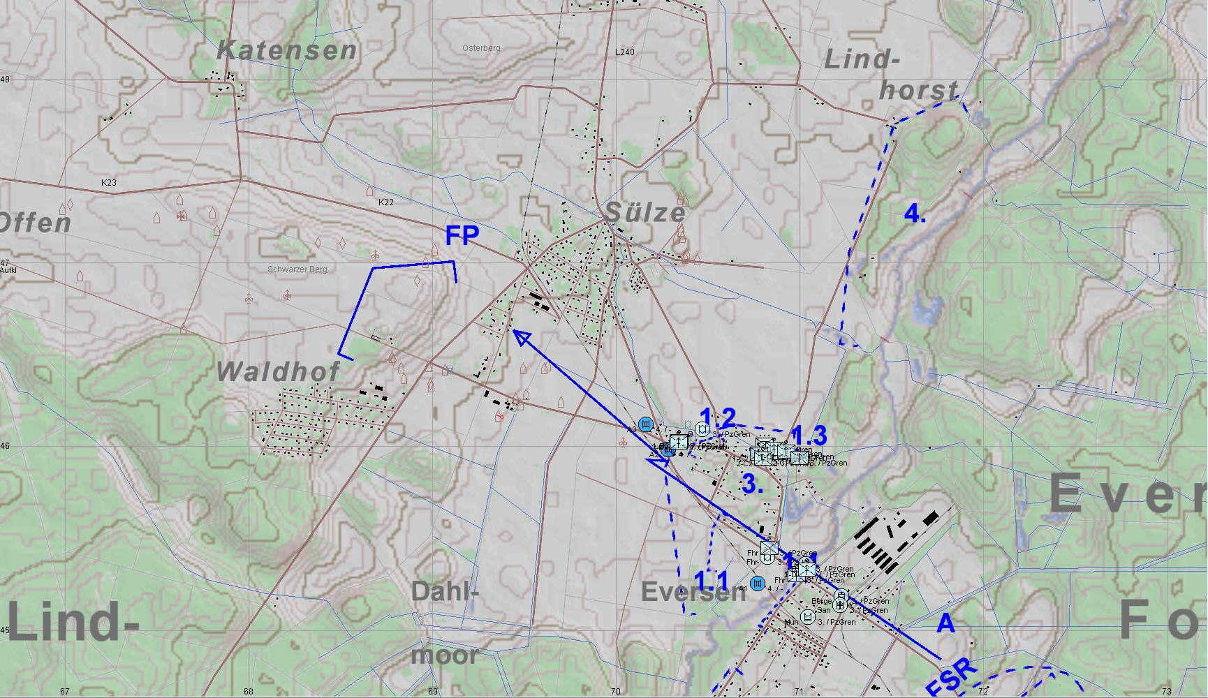 A-Zg hatte zwar kaum noch Munition, aber man war erfolgreich! Wir hatten 1 Leo und 4 Marder verloren, der Feind alles!!