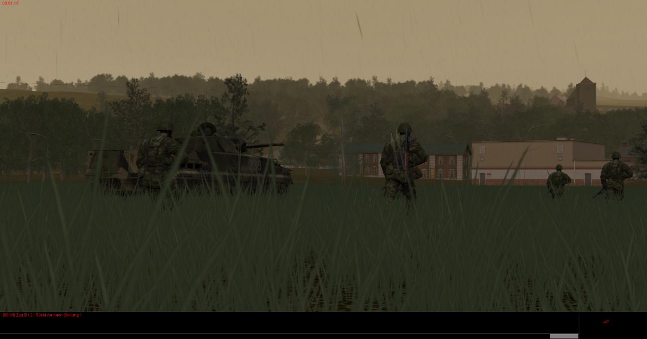 Das verstärkte PzGrenBtl 913 ist rechts vom PzBtl 911 im Angriff auf die südlichen Brückenübergänge eingesetzt, soll den Feind im Norden in den Rücken fallen, das Ausweichen nach Osten hin erschweren und diese somit von den eigenen Kräften abschneiden.
