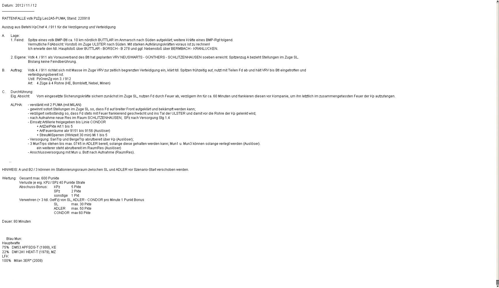 Langsam wurde die Munition knapp. A1 und A2 konnten noch Mun ergänzen, dann wichen die Mun-Tonner aus. A-Fhr beorderte den ResMun-Tonner zu B2 u. 3, aber das dauerte!