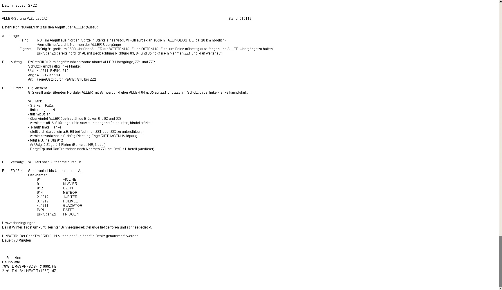 Es schien ein ruhiges Gefecht zu werden. SpähTrp FRIDOLIN A trat weiter an, stieß auf T-90 und wurde vernichtet! Nun wurde A gefordert! Wurde der erste fdl PzZg noch schnell vernichtet,