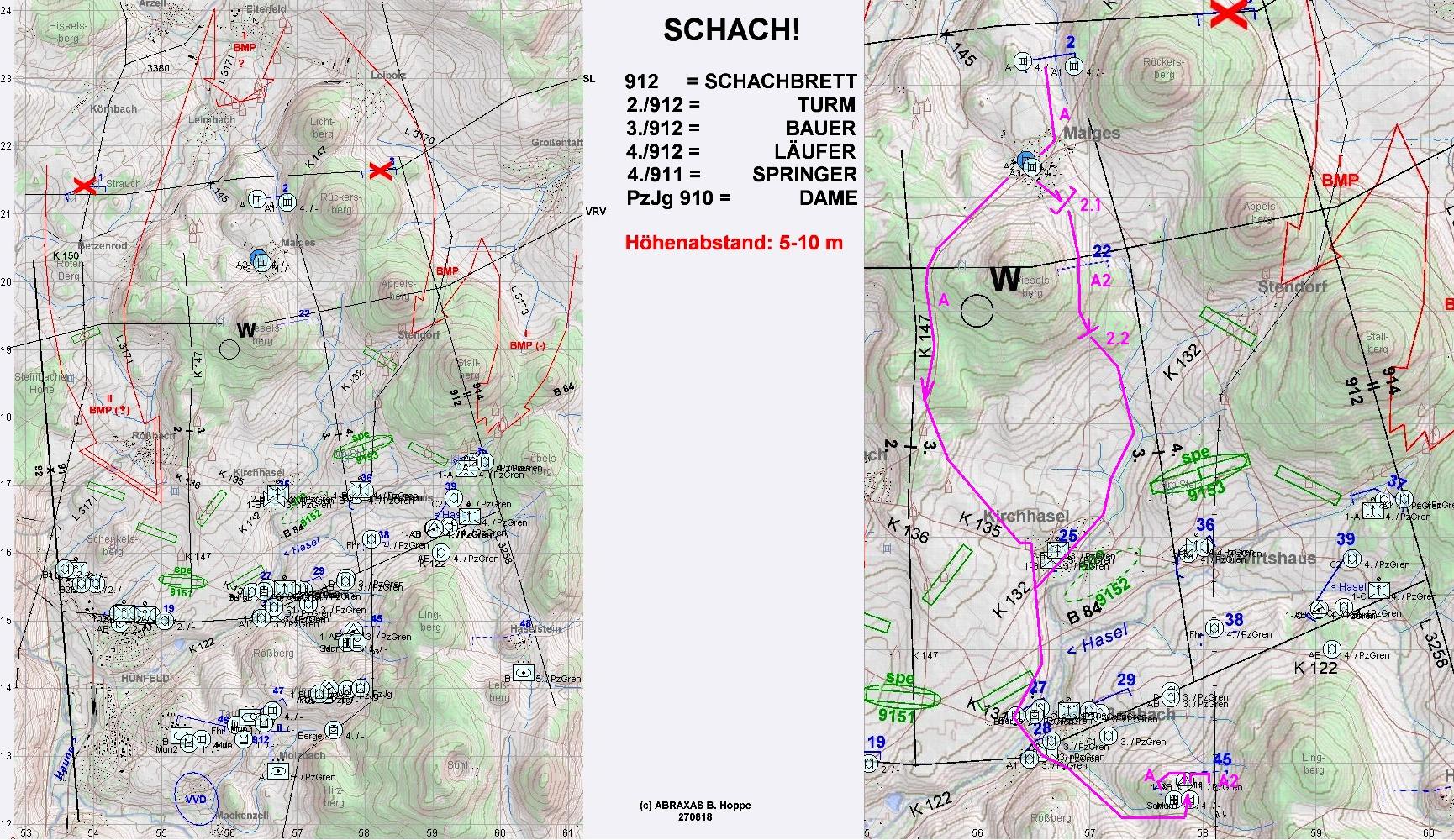 ROT griff mit einer T-80-Kp mittig und einer BMP-Kp im Zuge K147 an. Alle teile A waren jetzt gefordert: