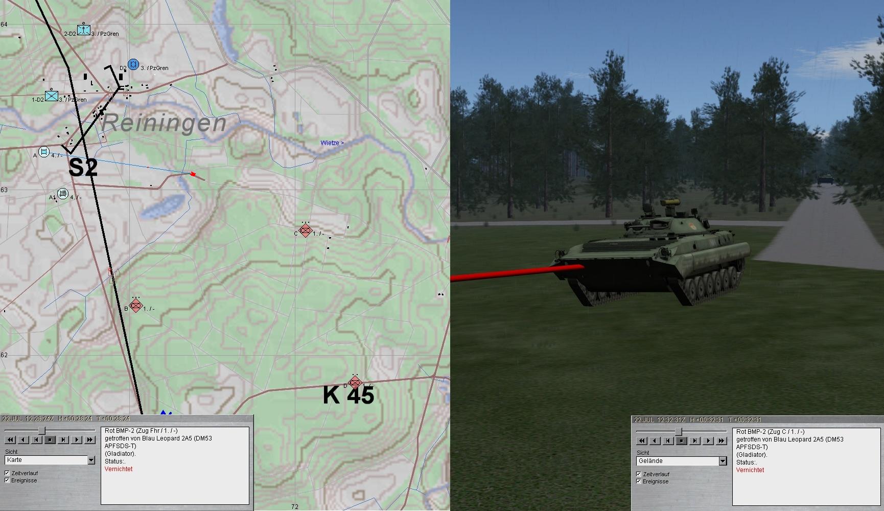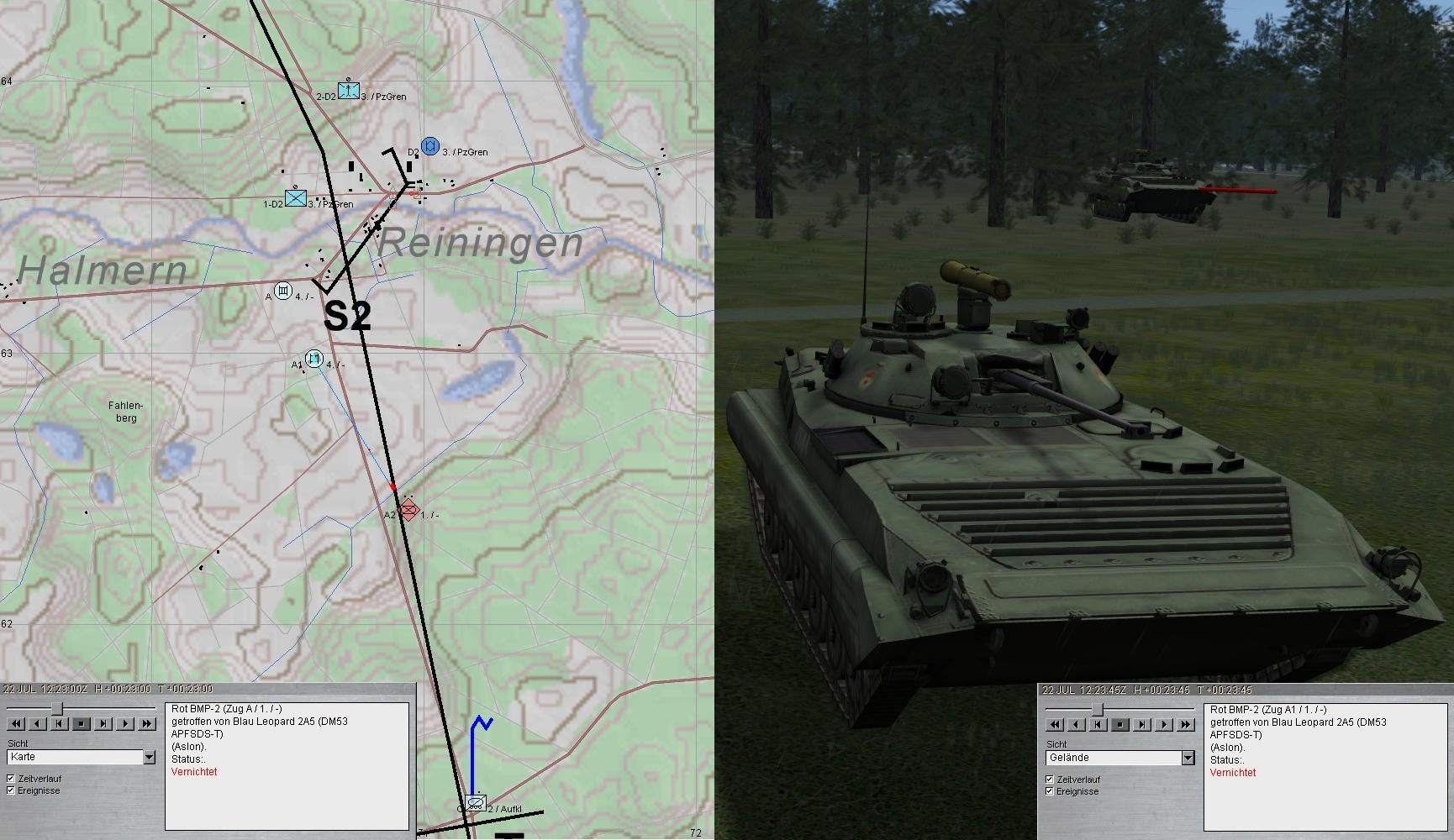 Wenig später erkannte A1 fdl GefAufklärung (BMP-Zg) aus S bei K46 und konnte diese ebenfalls vernichten: