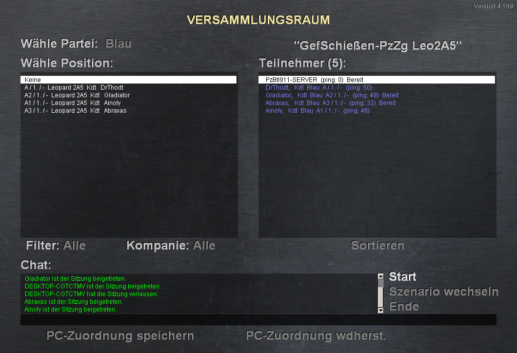 für mich war das die erste Teilnahme beim 911er, sowie generell SB im Multiplayer und entsprechend aufgeregt war ich. Die Jungs vermittelten aber die Ruhe selbst, was auch auf mich dann später etwas abfärbte. Die Übung wurde von Dr Thodt geleitet, der mich bei Sichtkontakt immer fragte ob ich die gegnerischen Fahrzeuge sehe und wenn ja, mir die Erstbekämpfung überließ. Von insgesamt 6 abgegebenen Schüssen waren 4 im Ziel. Für den Anfang gar nicht so schlecht. Allerdings habe gemerkt, dass ich mit dem dynamischen Vorhalterechner noch etwas Übung brauche. Seltsamerweise waren aber meine manuellen Vorhalte Schüsse immer im Ziel.