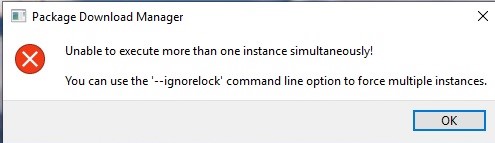 PS. Man muss wohl beim Beenden des Package Download Managers auf den roten Kreis mit weißem Kreuz klicken und nicht auf das Kreuz in der rechten oberen Ecke, denn dann schließt er offensichtlich nicht richtig.