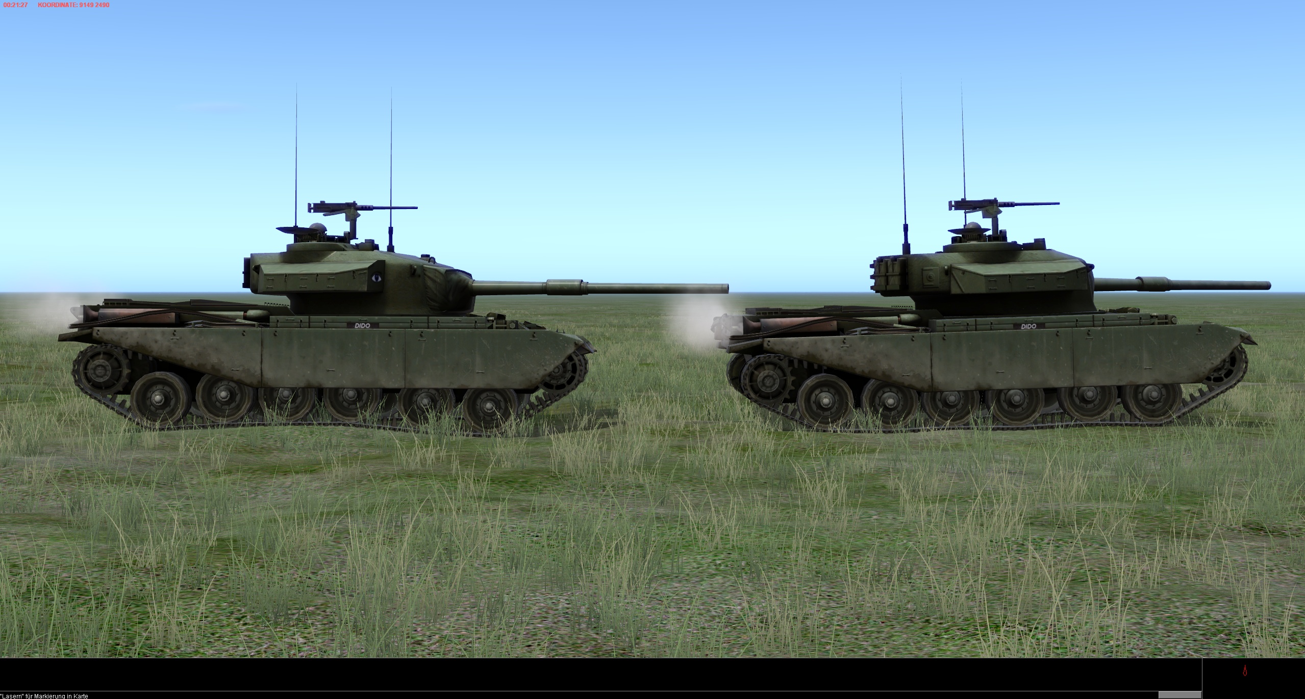 Edit: Mein Testszenario (Alle Fahrzeuge der Kategorie "Panzer", jeweils 2x, Reihe, Abstand ca. 15 Meter gemessen von Mittelpunkt des tak. Zeichens, Default Karte):