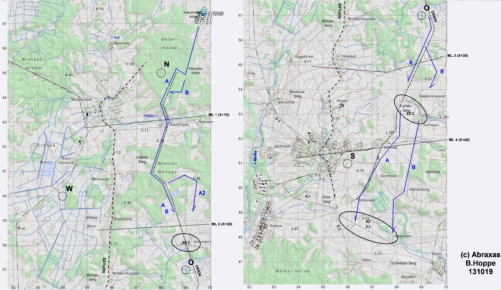 Der verstärkte Zug trat mit B voraus zunächst in Höchstgeschwindigkeit Richtung ML1 an und gewann REDDINGEN. Schnell konnte weiter angetreten werden und man entfaltete um das ZZ1 zu nehmen.