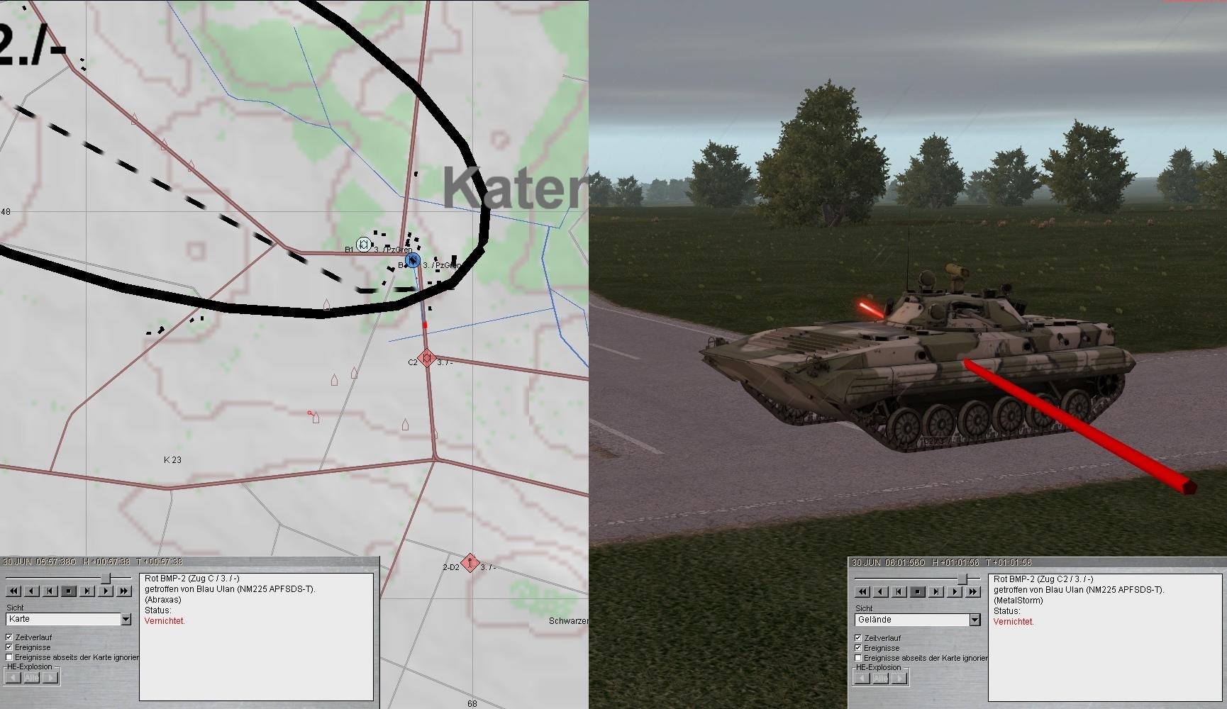 Währenddessen war B weiter Richtung AZ vorgerückt und erkannte eine weitere BMP-2-Kp, die Richtung AZ vorrückte. Es kam zum Begegnungsgefecht, das letztlich A und B gewann: