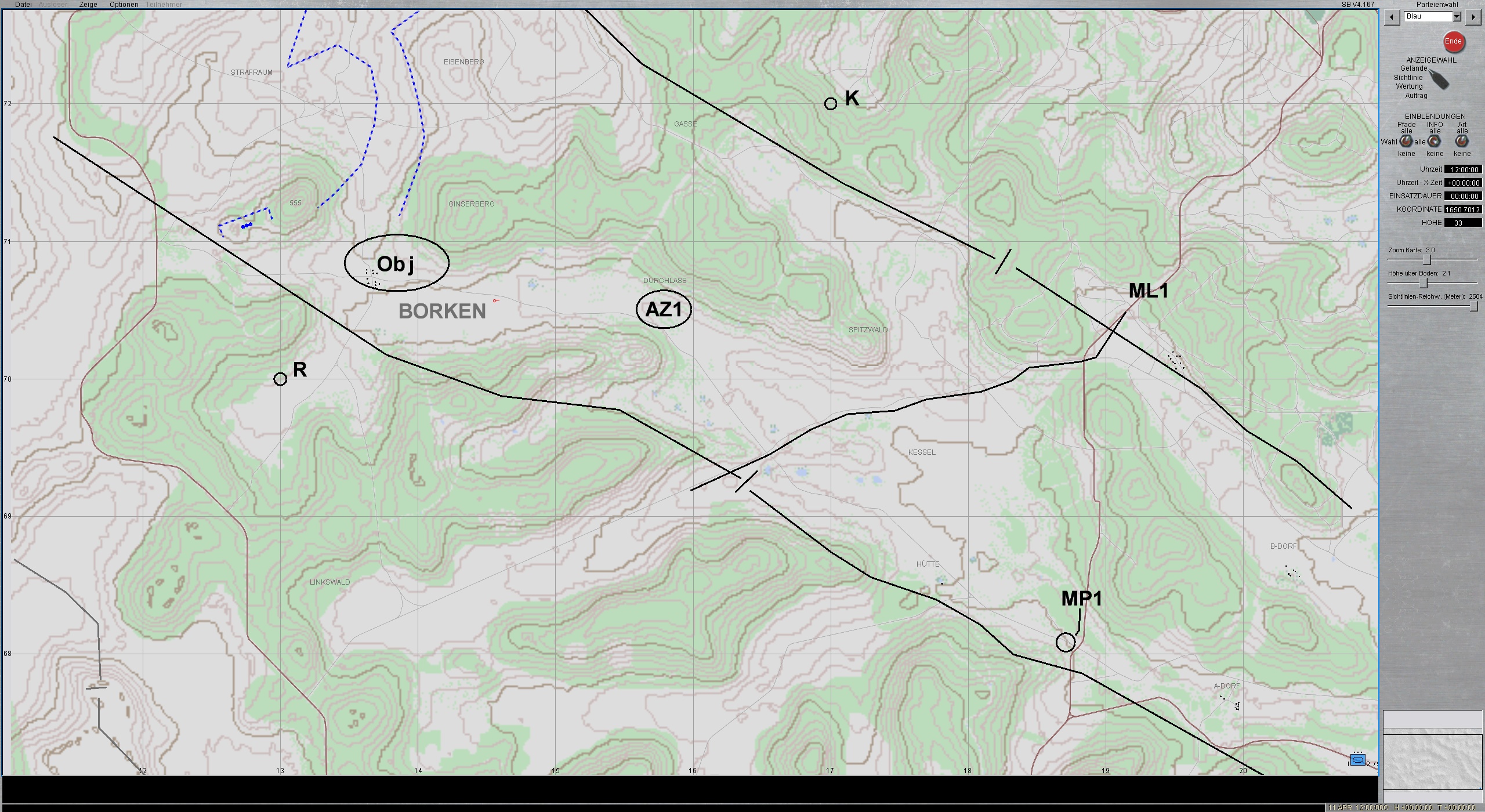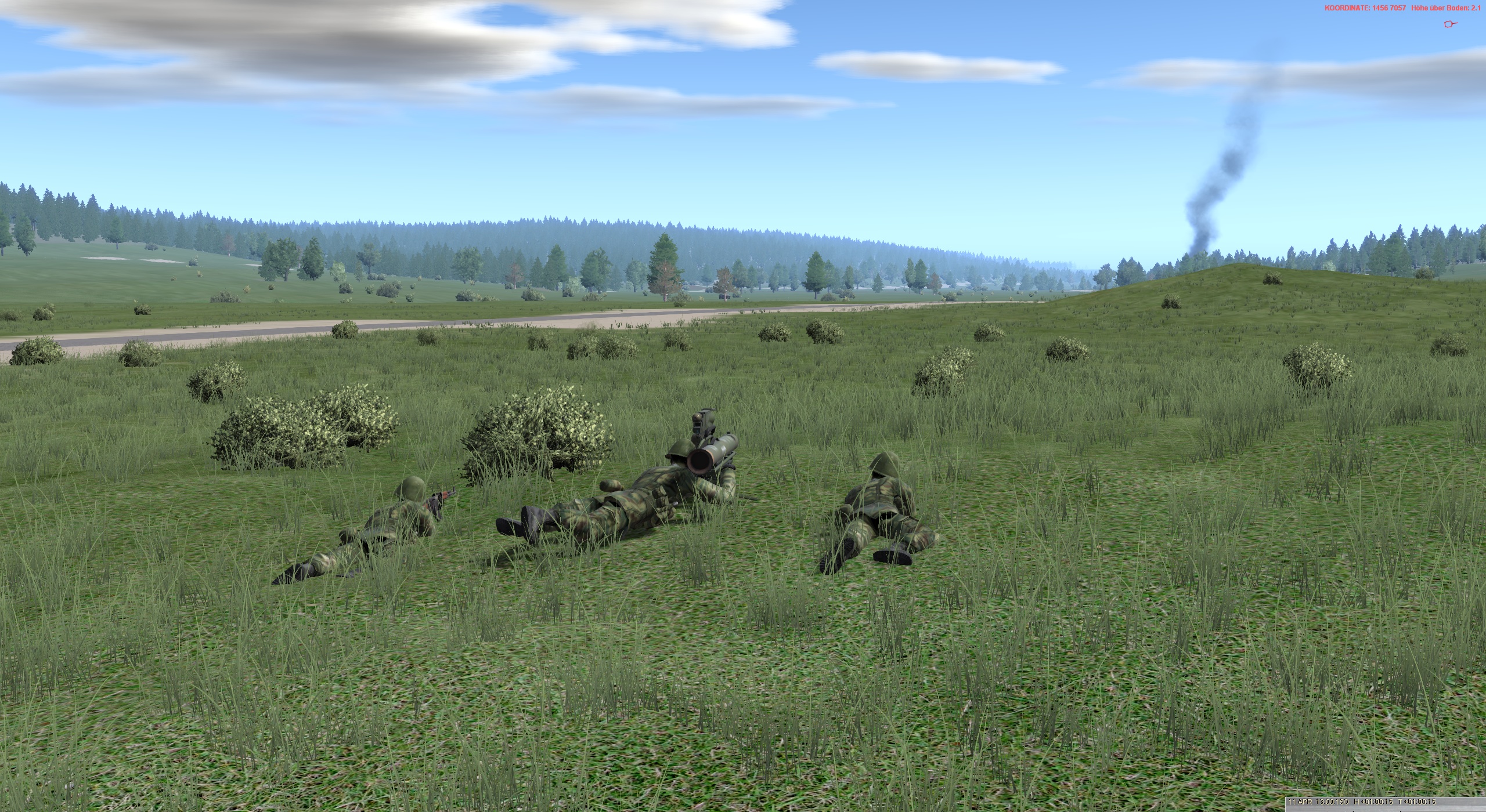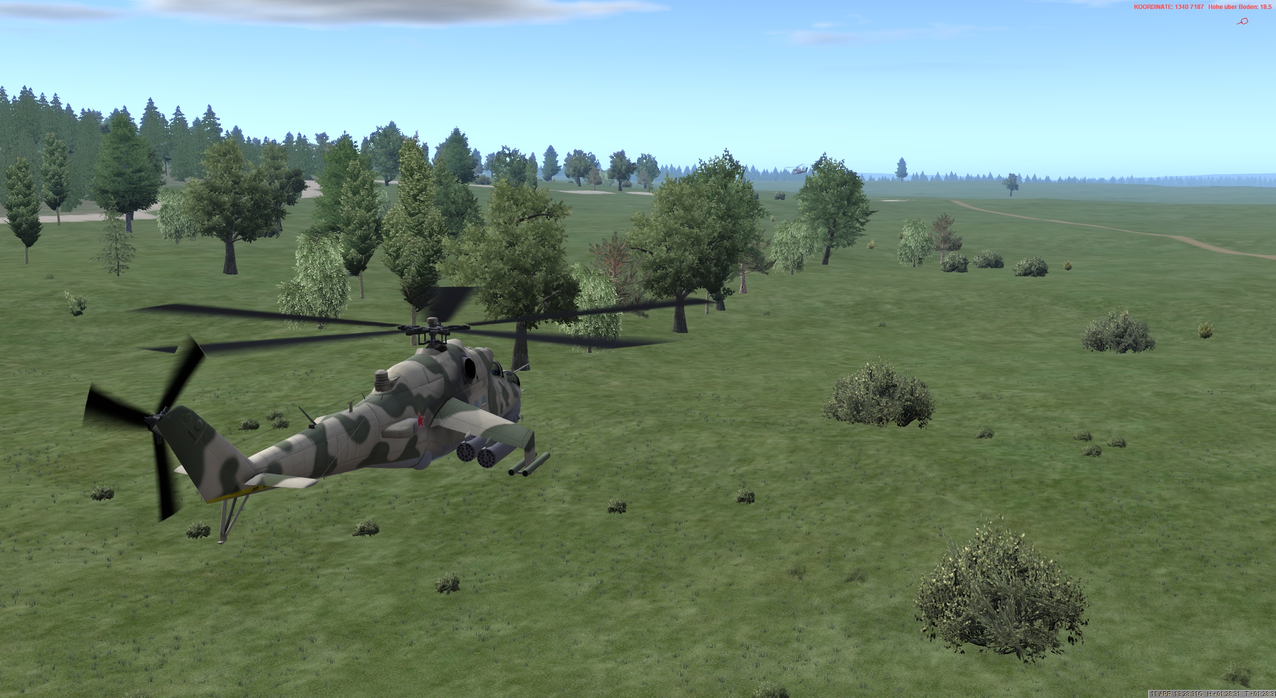 Der zwote Halbzug bezieht Feldpostenstellung unter Sicherung der ersten Gruppe, die nördlich Objekt steht. Sobald zwote Gruppe Stellungen bei 555 gewonnen hat, tritt erster Halbzug ebenfalls auf den Feldposten an.Der Zugführer hört leise Hubschraubergeräusche.... "Das wird doch nicht?"