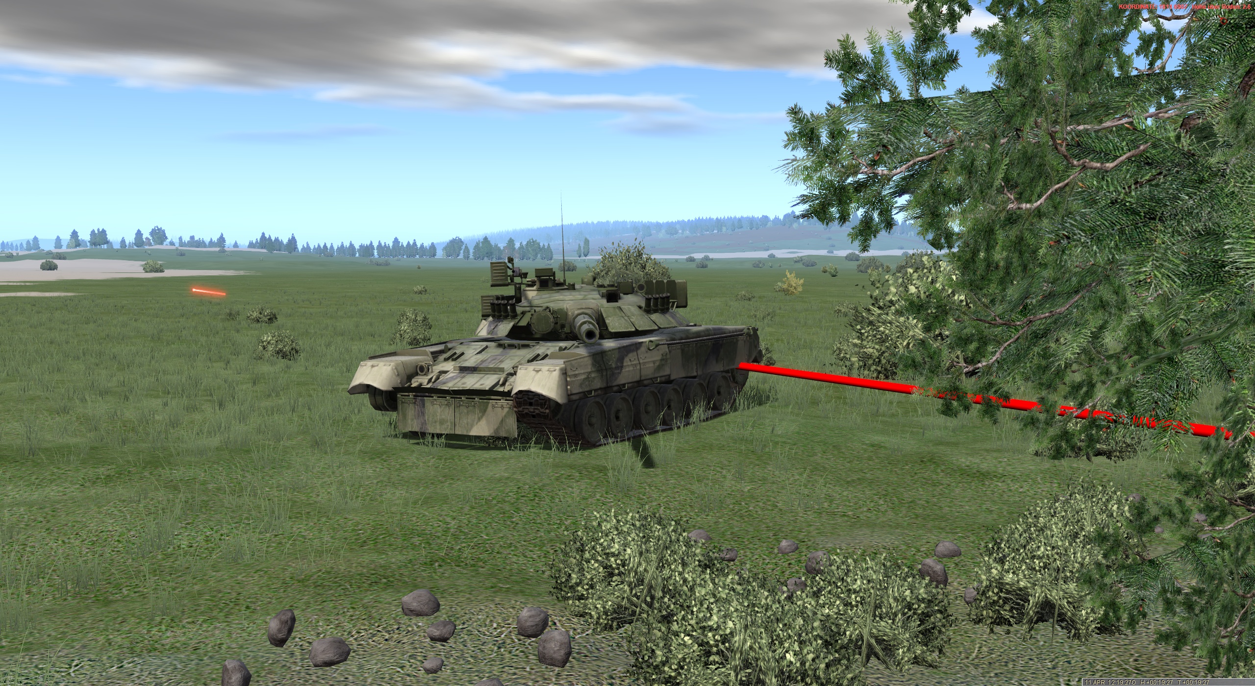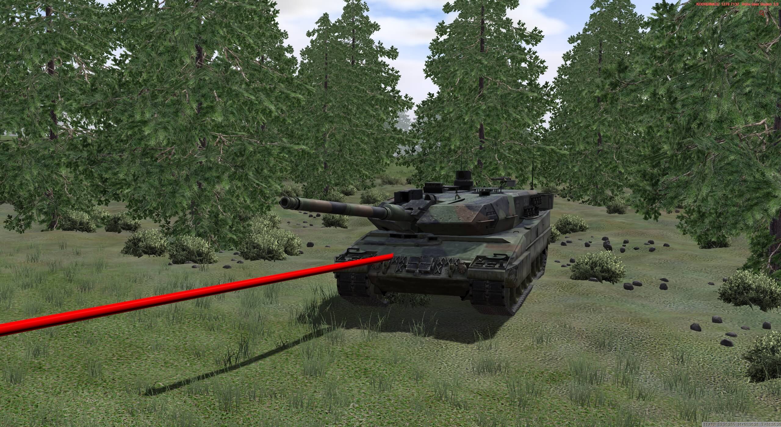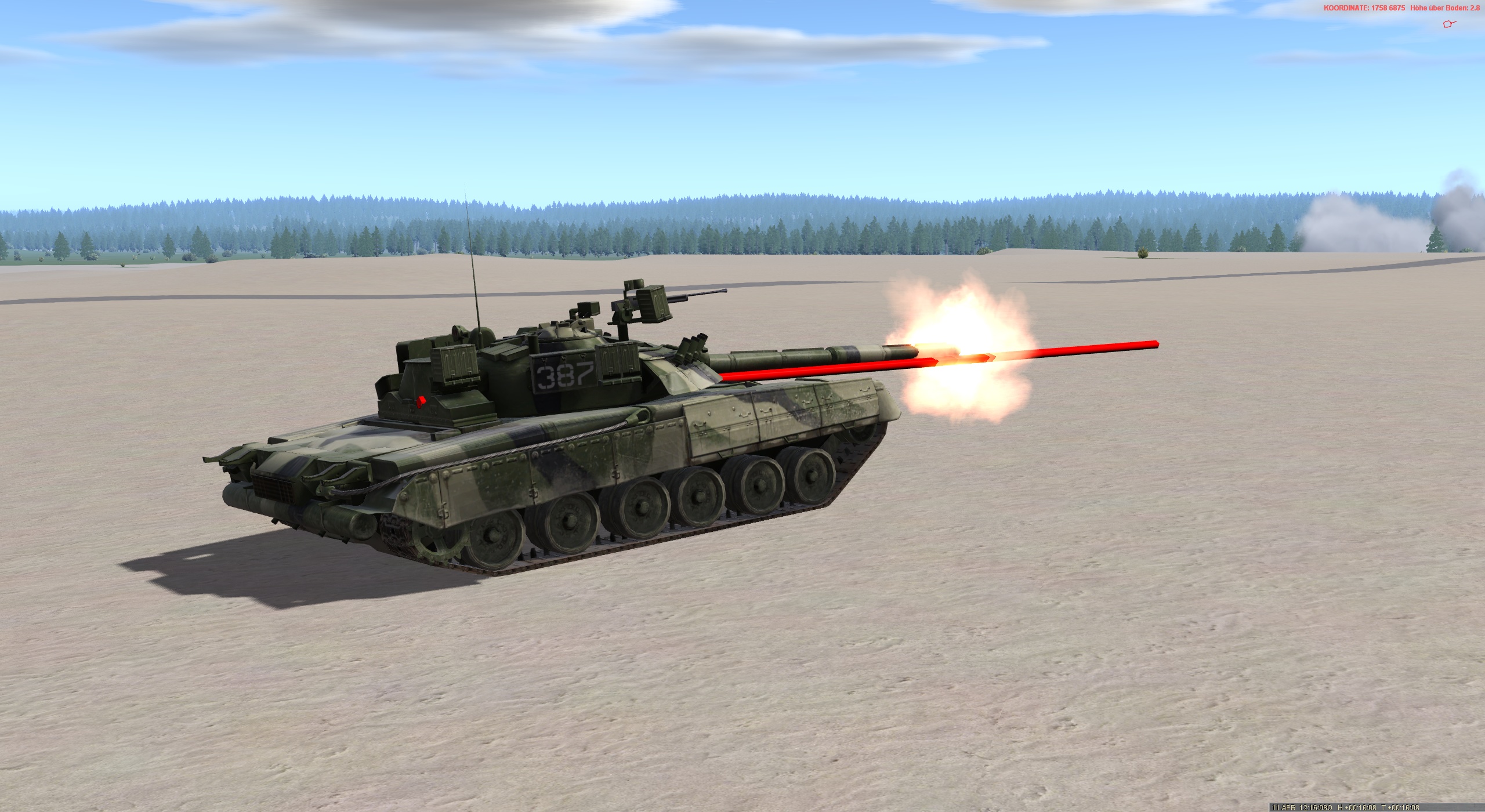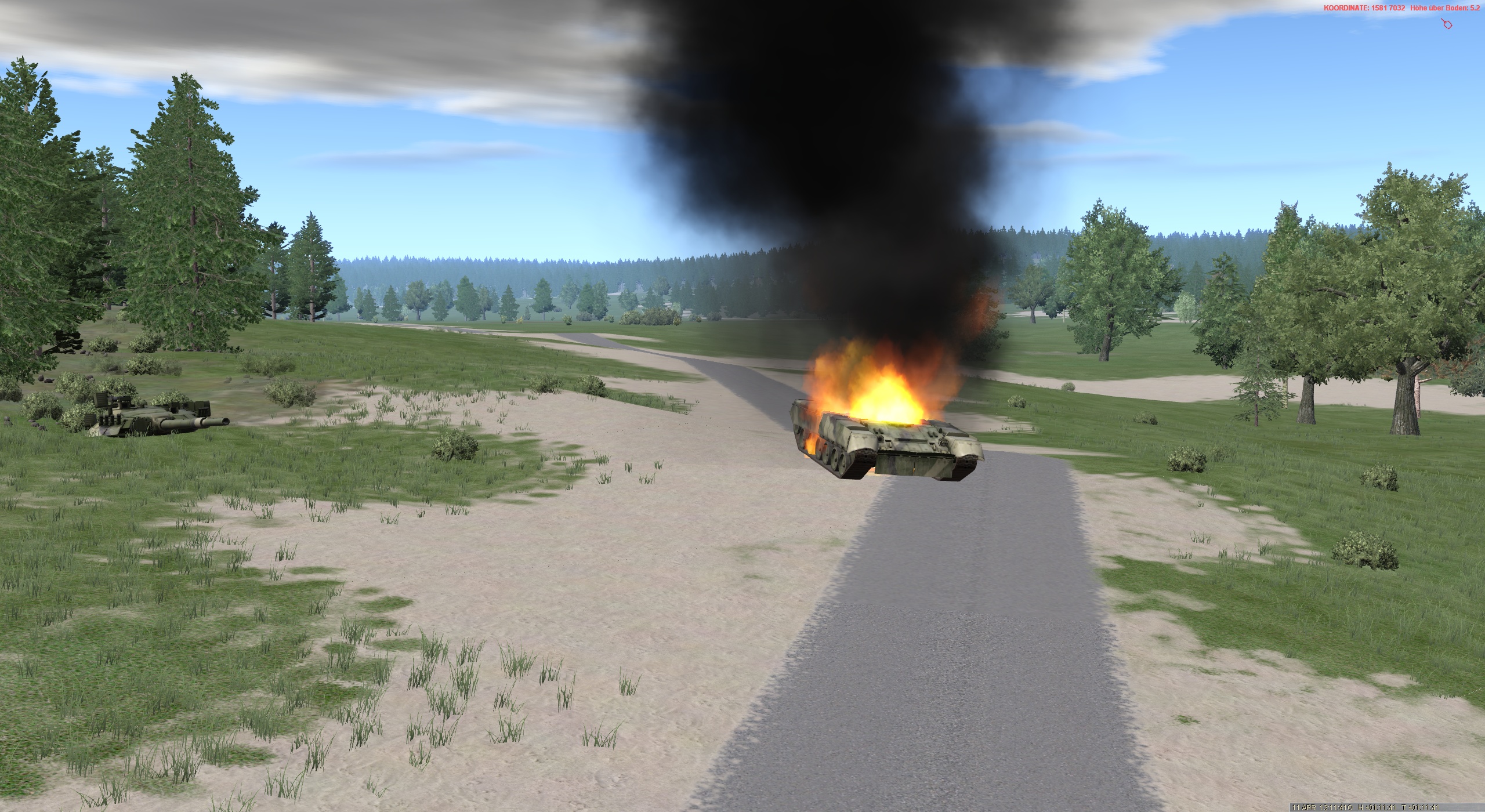Jetzt geht alles sehr schnell. ALFA 1 meldet feindlichen KPz bei AZ1 und einen weiteren KPZ im Bereich HÜTTE. Entschluss des ZgFhr erste Gruppe tritt an und vernichtet feindl. KPz im Bereich HÜTTE. Hierbei liefert sich ALFA 1 eine Duellsituation mit einem T-80U und vernichtet diesen. ALFA selbst klärt weiteren KPz nord-ostwärts auf, kann sich aber nicht in eine günstige Stellung bringen und erhält einen schweren Treffer, der den Richtschützen und Ladeschützen verwundet.