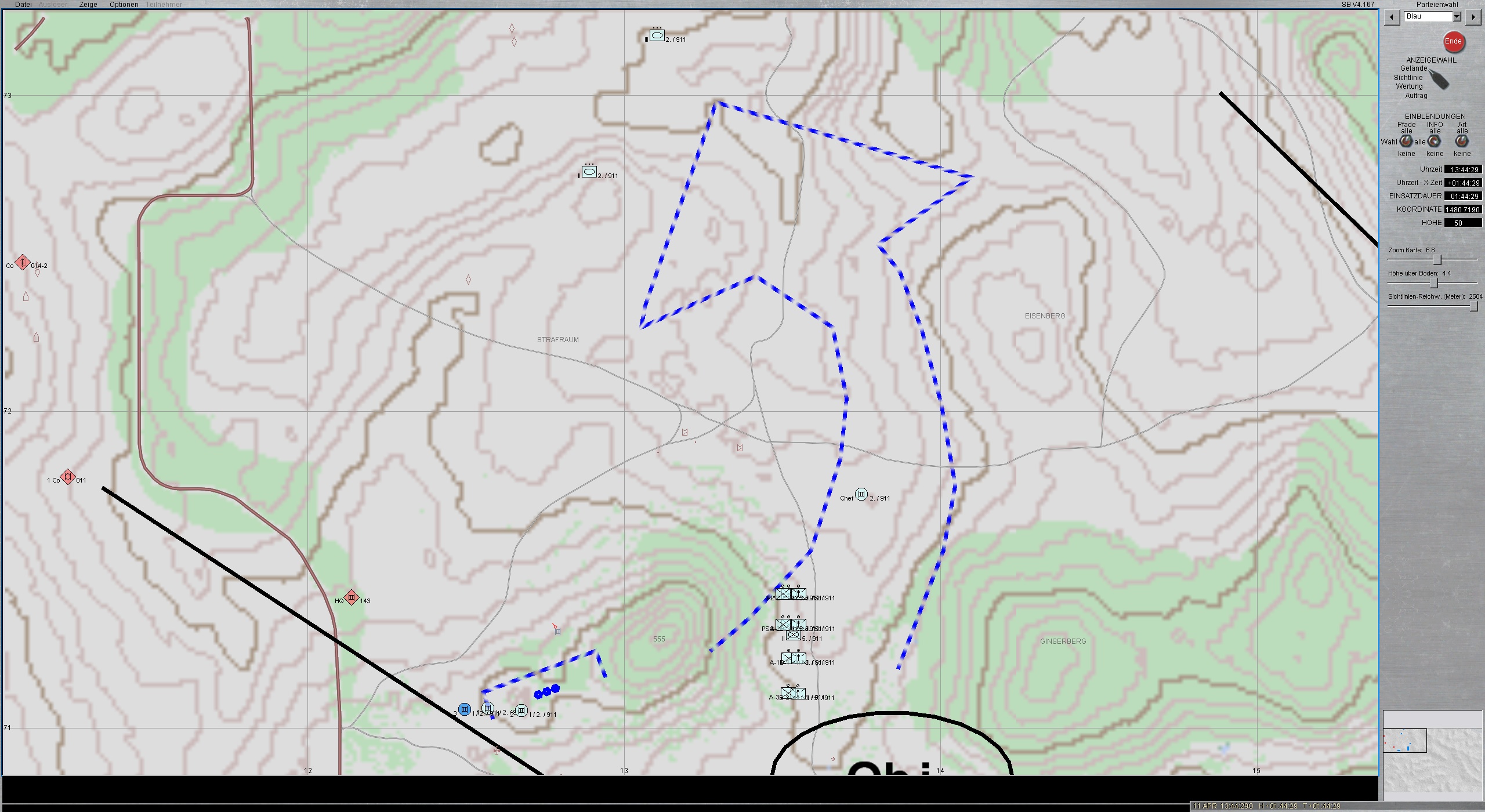 Die 2./911 hat den Ruf "DONNER" vernommen und marschiert über ML1 auf Objekt.