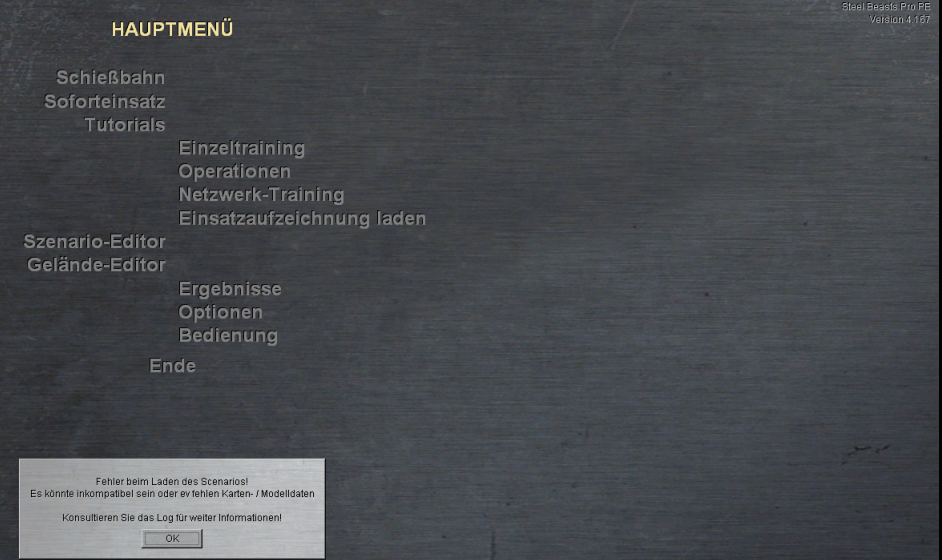 Sowohl die Karte als auch das Scenario habe ich mehrfach neu heruntergeladen und in die entsprechenden Ordner gesetzt. Ohne Erfolg.