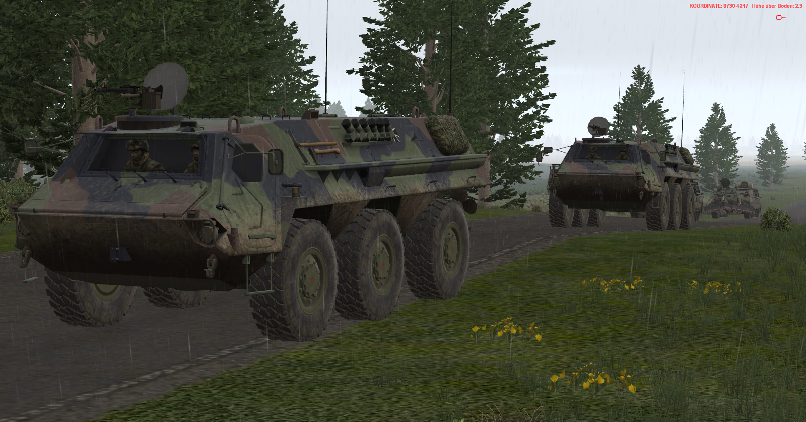 Rot Kräfte habe starke Verluste erlitten und mussten bis hinter die ASCHAU ausweichen und haben sich dort zur Verteidigung eingerichtet. Zudem haben sie erhebliche Schwierigkeiten mit dem Nachschub und laufen Gefahr bald keine Munition mehr zu haben. Nachschub ist anscheinend auf dem weg, aber auf Grund des schlechten andauernden Wetters, ist deren Vorrankommen extrem erschwert. Wenn baldmöglichst keine Munition die Truppen erreichen sollte, werden sie gezwungen sein zu kapitulieren und ihre Waffen niederzulegen.