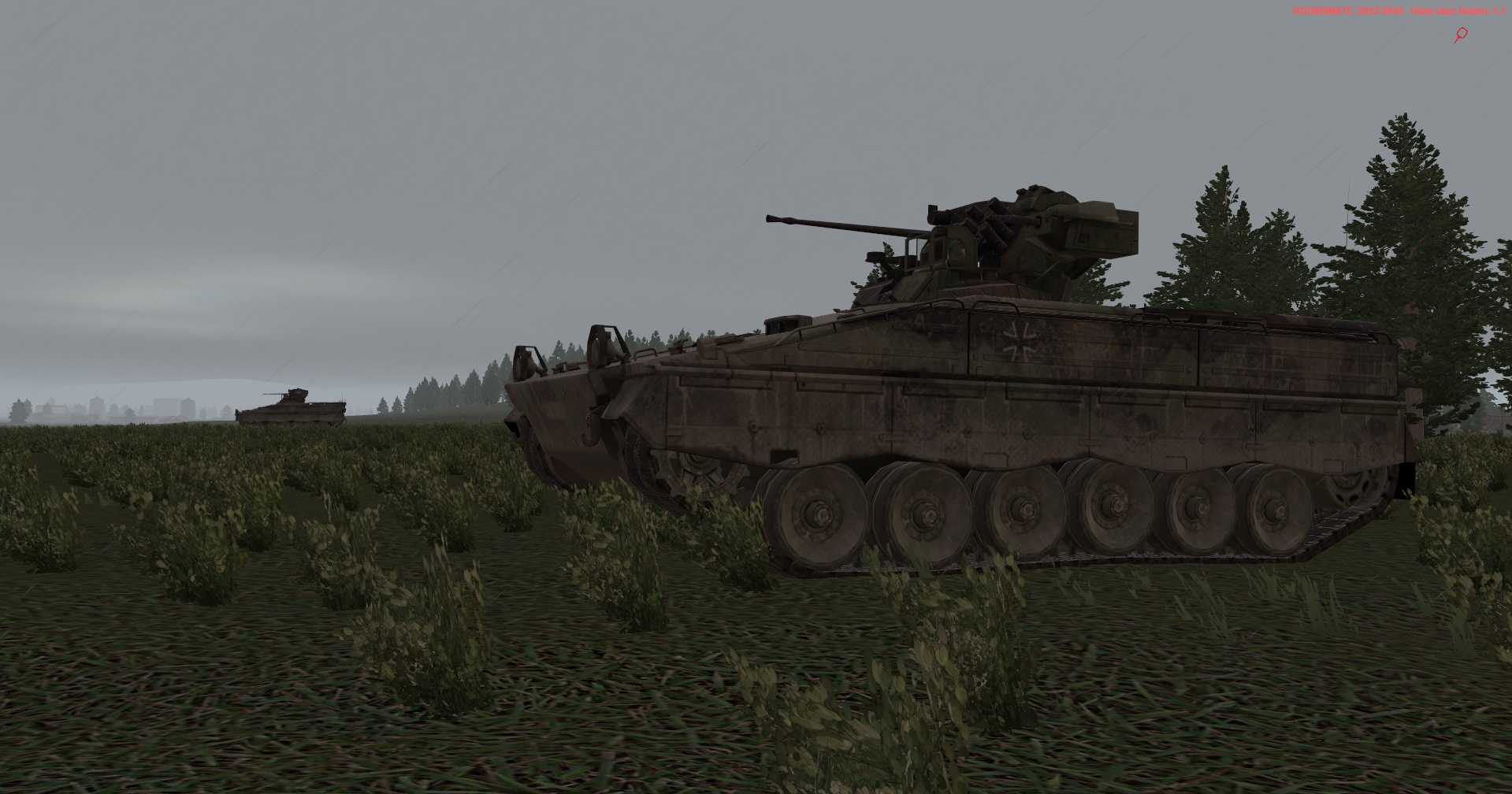Die vereinzelt verbliebenen Feindfahrzeuge, die größtenteils wohl bewegungsunfähig oder kampfunfähig sind, befinden sich überwiegend hinter der PL 5. Es ist bekannt, das mindestens eine MechInf Kp bei NORTHEN-LENTHE steht und einige Kampfpanzer im Raum ALMHORST.
