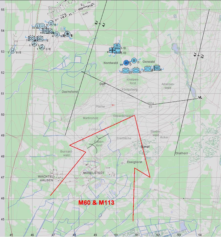 Feind in nicht ganz Btl-Stärke (Schwedisch). Höhrt sich nach ner menge Holz an, ist es aber eigentlich nicht. Wenn man am Ende des Sze´s sieht wo & wieviel Feind dort steht, dann ist das eigentlich auch nicht viel.ROT: