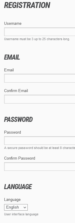 During the registration process, users can select their preferred language: