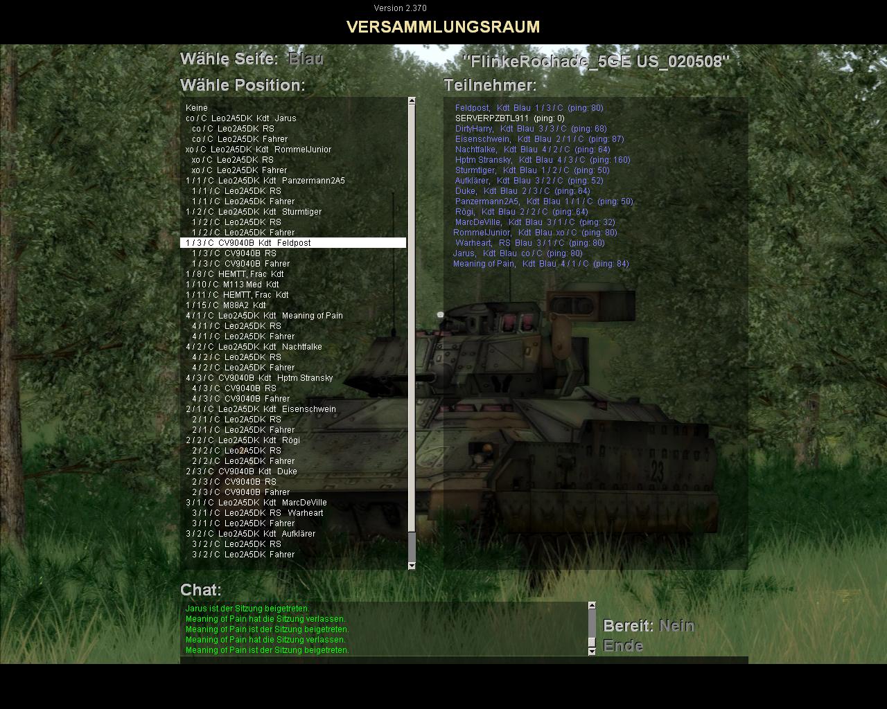 Doch Verwirrung?????du kannst ja mal auf dem server ein wenig arbeiten. wenn ein gefecht bis 24:00 uhr andauert, habe ich nicht unbedingt noch lust mich auf diversen