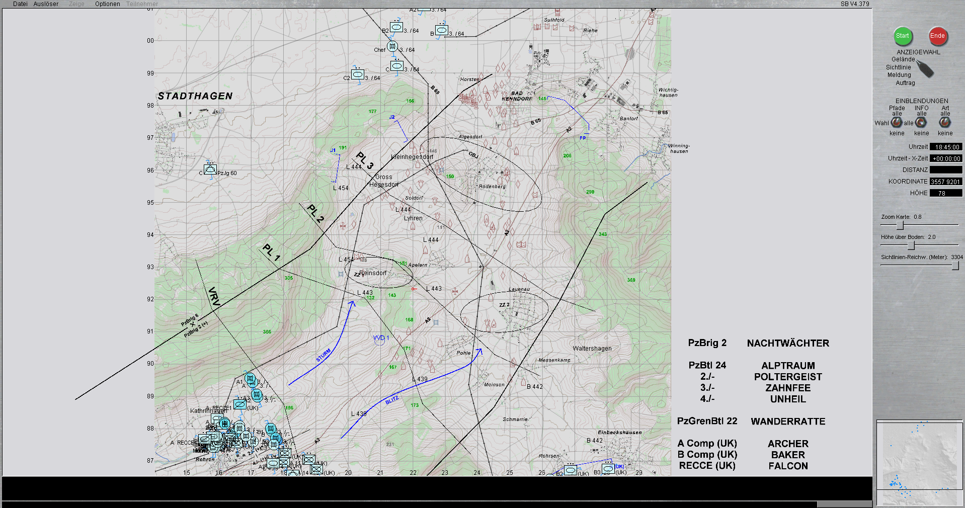Teil 1 = Verzögerung einer vstk PzKp // Teil 2 = Gegenangriff einer vstk britischen GrenKp mit 2 Panzerzügen und einem Halbzug Luchs