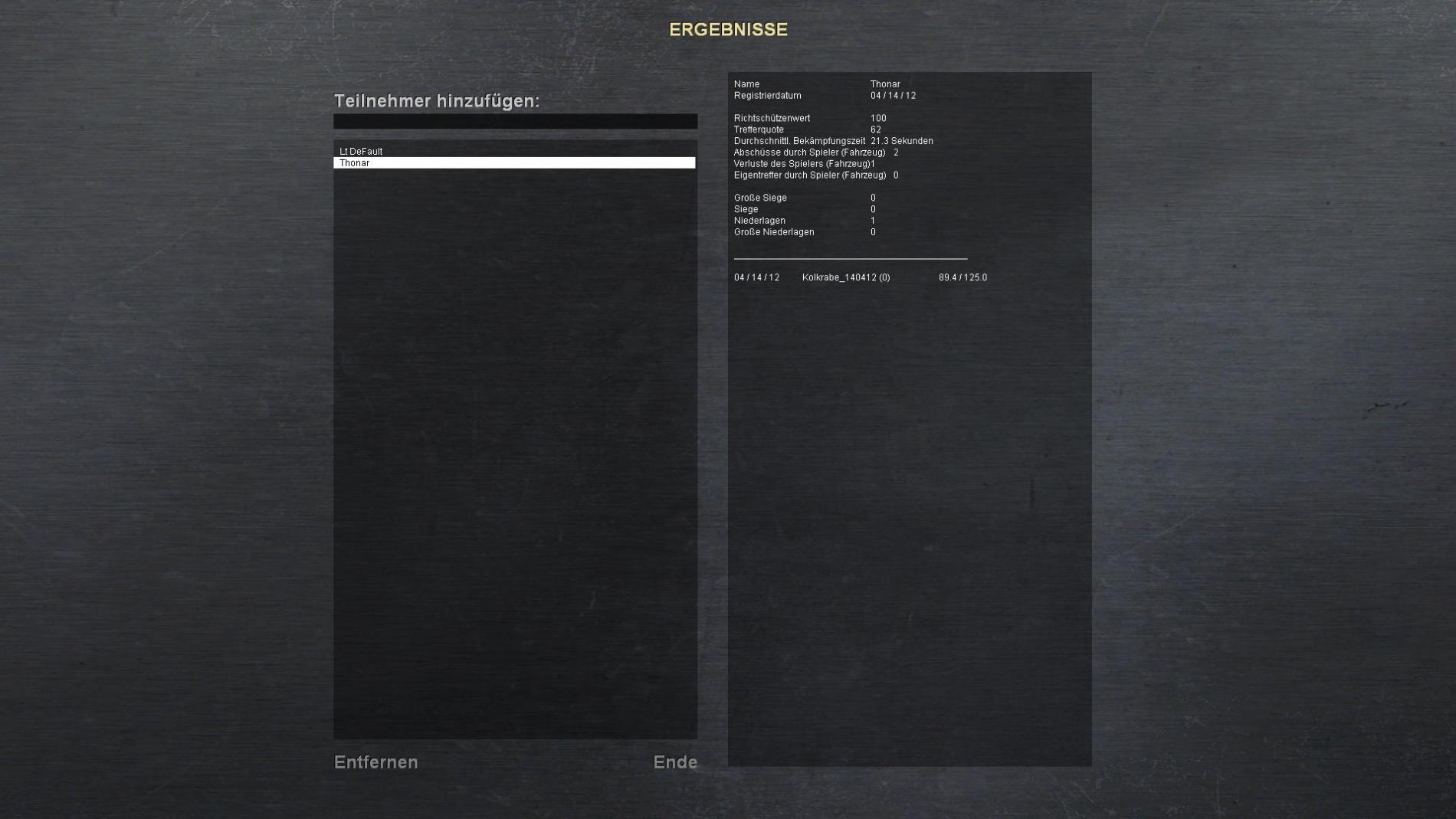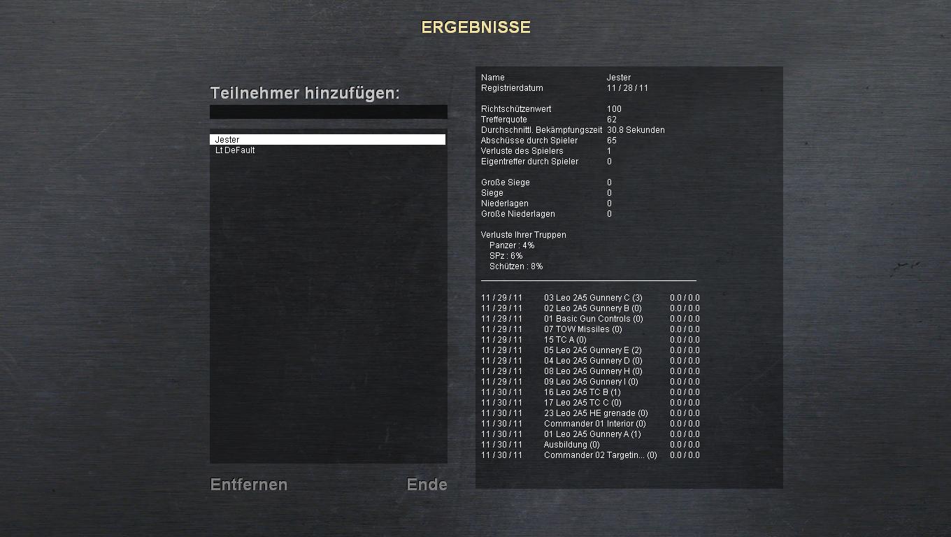 Bitte auch noch einen Screen von der Wertung nach der Schießbahn (AAR) posten ;-=