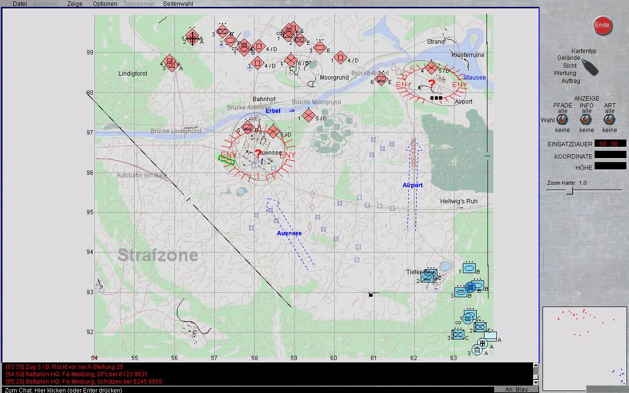 [/INDENT][/INDENT]2)Auftrag[INDENT][INDENT] Stelle Sie sich auf die Verteidigung der Ortschaft AUENSEE mit Verkehrsknotenpunkt und die Verteidigung des regionalen Flugplatzes, welches als die primären Angriffsziele angesehen werden, ein. Weiterhin ist die Ortschaft MOORGRUND zu halten um flankierend das weitere Vorankommen evtl. durchstossender Feindkräfte zu behindern.