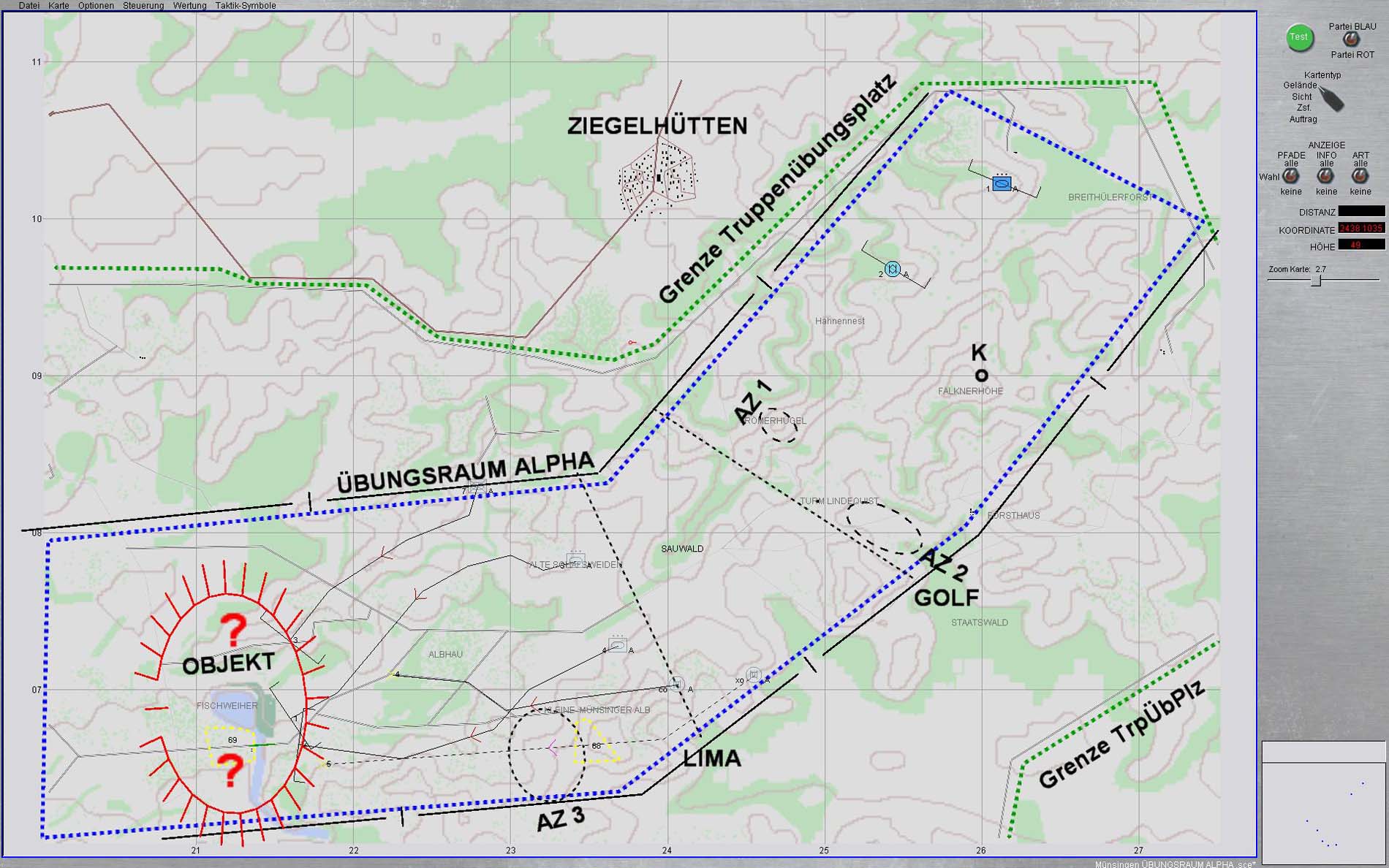 Ausgangslage(Idee) zum Sce.: Das PzBtl 911 befindet sich auf dem Truppenübungsplatz Münsingen, um sich auf die große Korpsübung " Standhafter Schwabe" im Herbst in Baden Württemberg vorzubereiten. Im Rahmen dieses Übungsplatzaufenthaltes werden insbesondere Gefechtsübungen im Zug und Kp-Rahmen durchgeführt. Am dritten Tag des Aufenthaltes steht die 4.Kp im Übungsraum BRAVO um im Zugrahmen eine Gefechtsübung zu fahren ..........................................