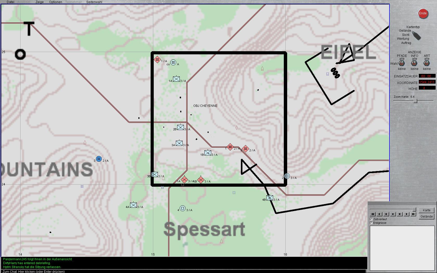 Was heißt hier abändern. Ganz klar Sieg BLAU. Der Halbzug von Nachtfalke ist schon scheintot. Stehe mit meinem SPZ auf 6 Uhr Position und führe fleissig Feuerkampf mit Wirkung im Ziel und da bricht das Scenario ab.