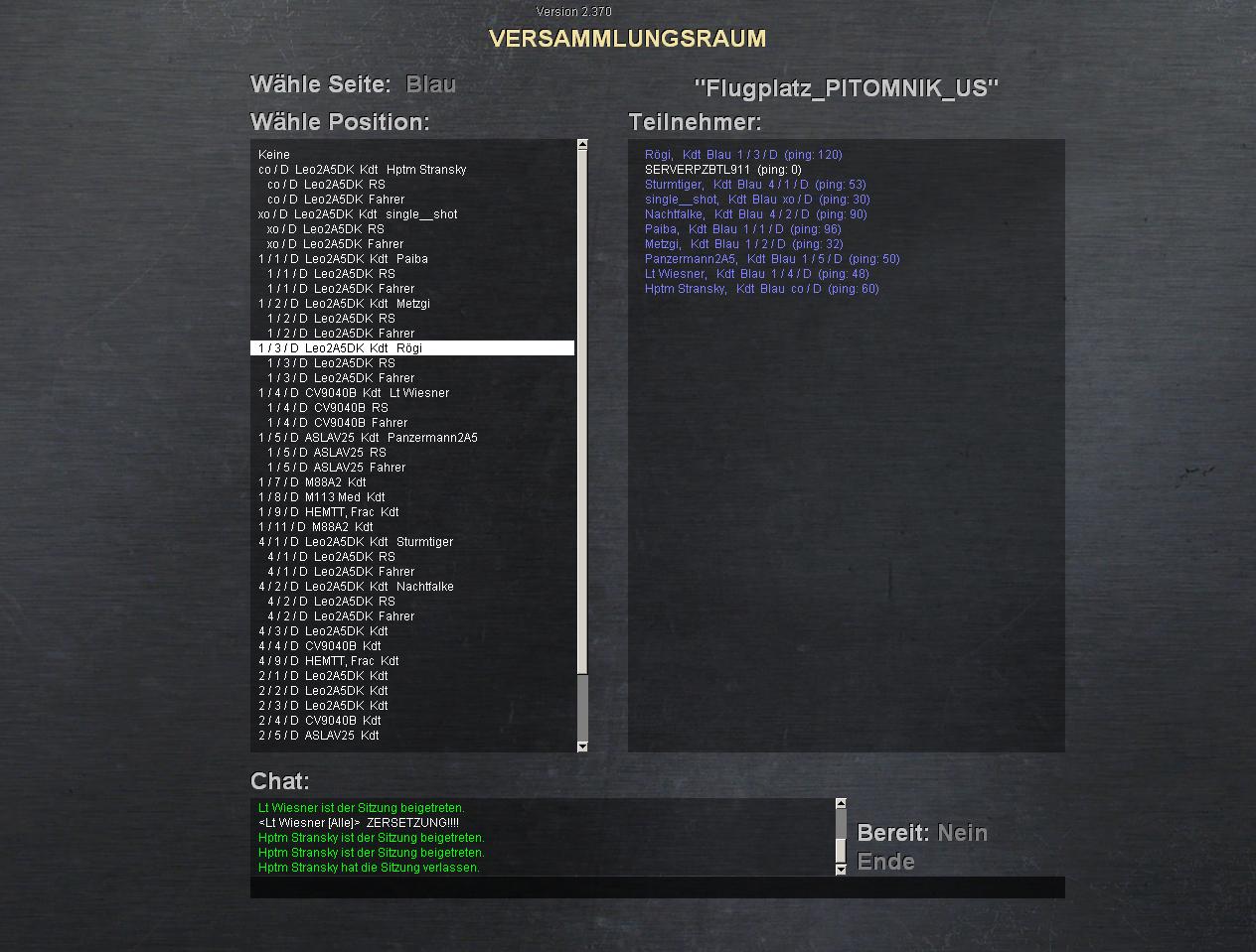 @TC: unbedingt mal den Server checken. Vorhin alle rausgeflogen aus dem Game. TS fing an zu hacken. Einige sind wohl ganz aus TS rausgeflogen. HP war auch nicht erreichbar. Login per VNC war nicht möglich. Nach ca 10 min. ging alles wieder normal. Ich hatte erst gedacht, daß der Server ´n restart gemacht hatte. War aber nicht der Fall. Als ich mich wieder einloggen konnte, war SB noch offen und ich konnte die Sitzung ganz normal schliessen. Wenn´s ´n Update von Windows war, ist der Zeitpunkt sagen wir mal etwas unglücklich eingestellt. Das selbe Problem bestand vor kurzem schon einmal. Ist wohl seit dem Umzug der HP so. Ist in meinen Augen auch nicht ganz glücklich, die HP auf ´nem Gameserver zu betreiben.