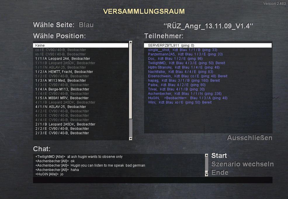 Bei dem Spz Zug (der nicht in unserem Gefechtsstreifen steht) bin ich davon ausgegangen, dass diese SPz durch eigene Artillerie ebenfalls beschädigt sind, da auch diese keine Anstalten machten in irgendeiner Form ins Gefecht ein zu greifen. Anders der Einzelpanzer, der aber ausgeklärt war aber ebenfalls nicht ins das Gefecht um Obj. eingriff. Delta (Blau) Totalausfall