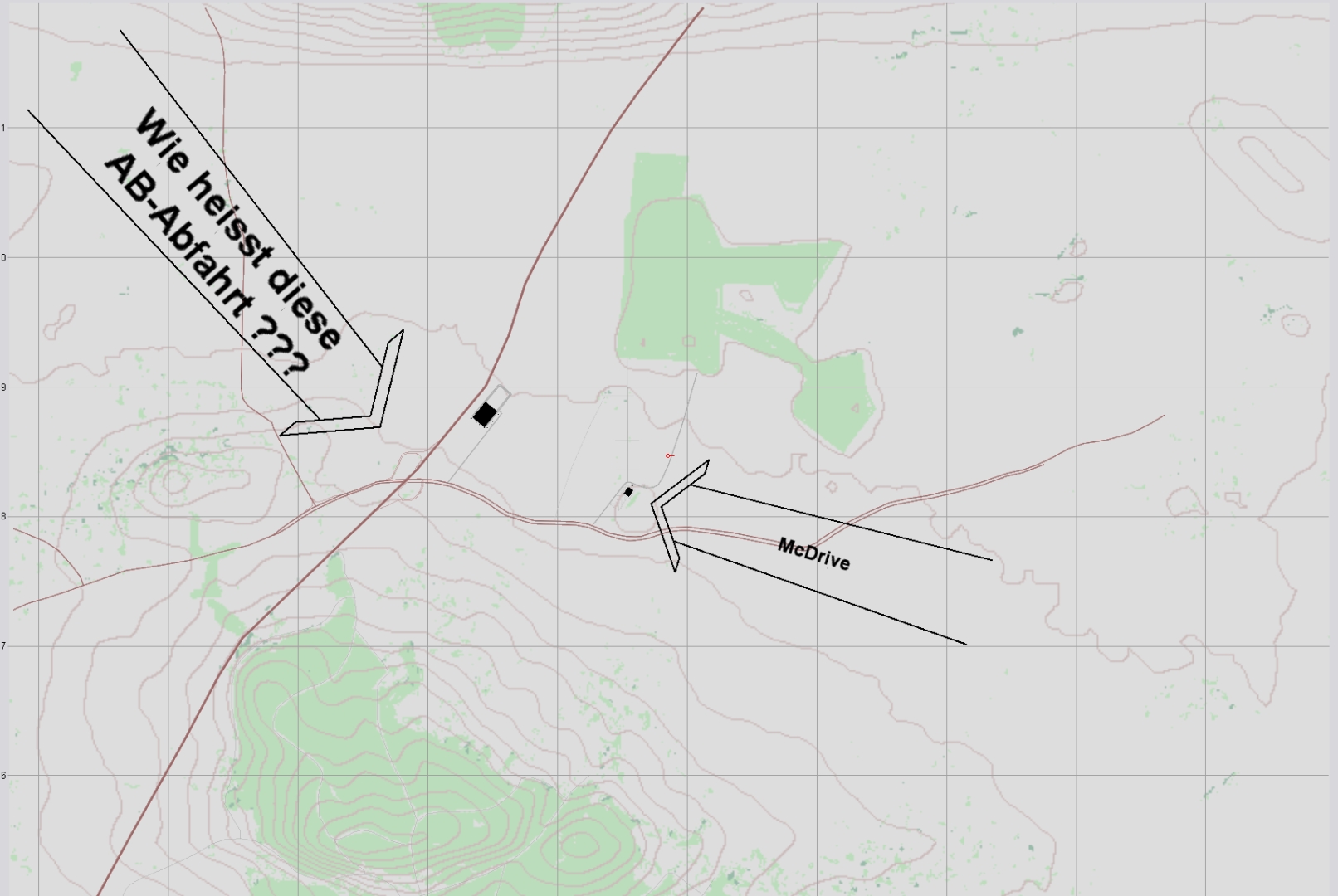 Frage 1: Wie hießt die AB-Abfahrt bzw. wie heisst die kleine Stadt am angebenen McDrive ?