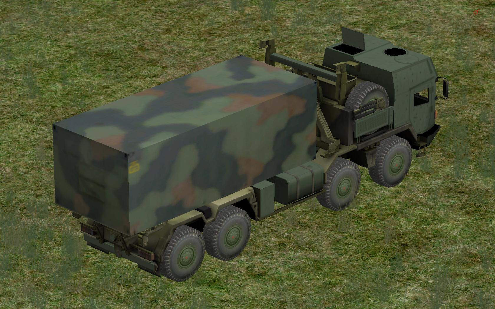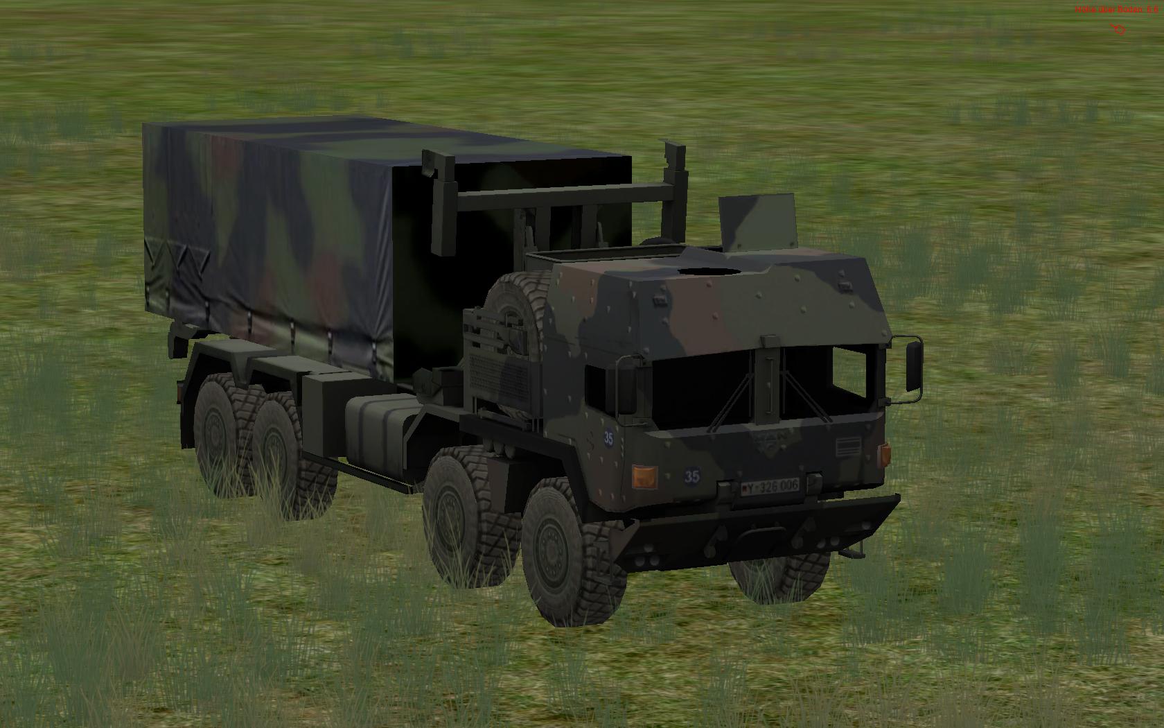 Ich hab Stunden lang im Internet gesucht, wie das Tarnschmema von diesem LKW aussieht. Aber ich hab nur diese Variante gefunden. Und weil ich noch etwas zu eintönig fand, hab ich halt noch das Tarnnetz über den Container gespannt.